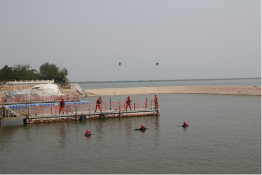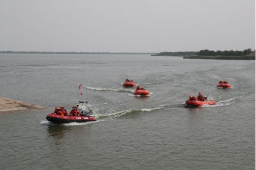 随着演练指令下达,各支分队模拟防汛水域险情闻令而动、迅速出击、协同救援,分别依次开展了救援力量展示、无人机侦查及喊话、水域抛绳包救援、翻覆自救、抛投器救援、水上机器人救援、离心力救援、舟艇编队及驾驶技术展示、集结列队等九个科目演练。整场演练以实战为背景,全体人员服从命令、默契配合,现场指挥得当、决策果断,圆满完成了水上抢险救援各项任务,达到了预期效果。