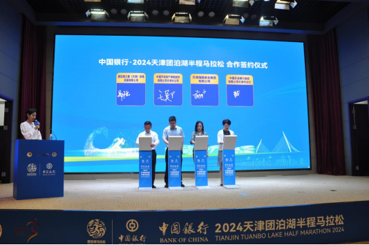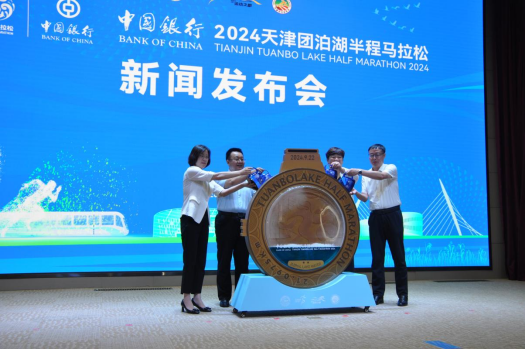 中国银行·2024天津团泊湖半程马拉松定于9月22日在天津静海举办,目前已获得中国田径协会A1类赛事认证。按照赛事要求,8月22日,中国银行·2024天津团泊湖半程马拉松第二次新闻发布会在中国银行天津分行举行。中国银行天津分行党委书记、行长马明俊,中国银行天津分行党委委员、副行长张静出席。市体育局二级巡视员吴卫凤、副区长白冰冰分别致辞,区委常委、宣传部部长郭颖发布2024天津团泊湖半程马拉松服装和奖牌样式。与会相关领导共同向奖牌模型注入“团泊湖湖水”。
