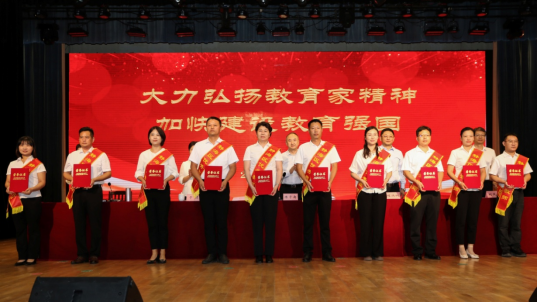 9月9日下午,在第40个教师节到来之际,博彩365 召开庆祝大会,表彰教育系统先进集体和先进个人,在全社会大力弘扬教育家精神,瞄定教育强区建设目标,努力办好人民满意教育。区委副书记陈子舟出席并讲话。区领导程炳纲、于清、刘风瑞出席。