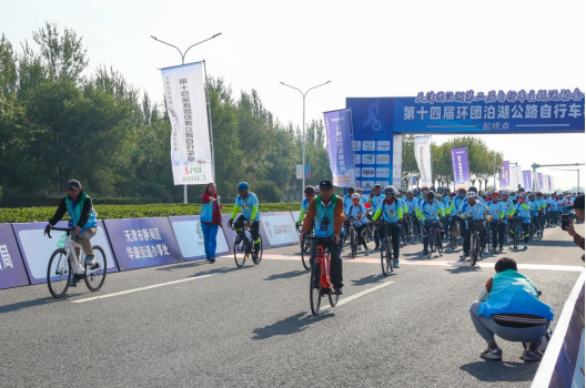 紧随其后的是环团泊湖自行车团体定向赛(成年组)的选手,来自全国各地的骑行爱好者们,用车轮丈量团泊湖美丽的土地,用热爱书写对团泊湖生态和人文的礼赞。