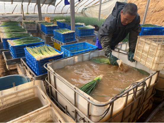 良王庄乡王家院村蔬菜种植户滑桂朋和工人们又开始了一天的忙碌。最近,他种植的一棚香葱进入了采收期,工人们忙着择葱,滑桂朋则忙着洗葱、装箱、送货。