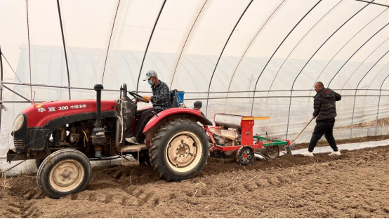 目前,合作社建有钢骨架大棚176个,占地近300亩。在旋耕机、播种机共同作业下,短短几天便可完成所有大棚的玉米播种工作。