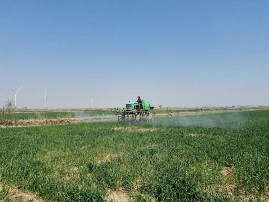 伴随着机器的轰鸣,两台自走式喷药机往返于麦田间,所经之处,雾化农药均匀地喷洒在麦苗上。“以前一个农民大概需要一天才能完成50亩的喷药作业,现在用一台喷药机,一个小时就能完成了,省时又省力……”说起机械化作业,中旺镇罗庄子村党支部书记、村委会主任张玉忠滔滔不绝。