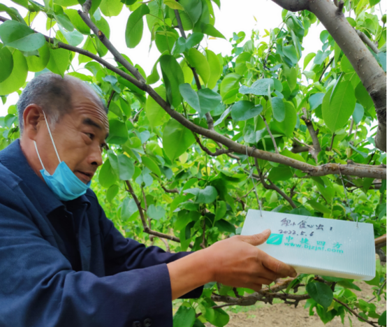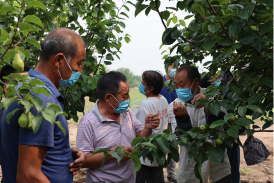孤木难支,众擎易举。凭借着张大权的真心和不遗余力,越来越多的人加入到黄冠梨的“种植大队”。为了让梨果产业得到更好的发展,2022年,张大权开始与天津市金仓互联网科技有限公司和农药供应商进行对接。从资料准备、药品选取、合作协商到农药储存与发放、农事记录等,张大权凡事都亲力亲为、事无巨细,最终成功申请了前邓村黄冠梨绿色食品A级认证,让村里的“小梨果”正式“持证上岗”。