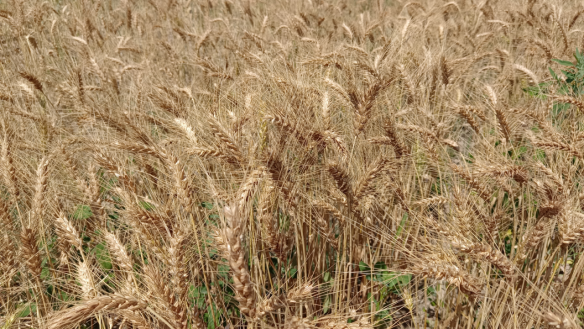 田野悠扬,金麦摇曳,晴空一片蔚蓝。