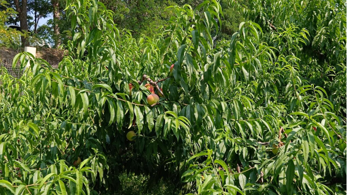 走进桃园,阵阵清香扑鼻而来,桃树长势喜人。