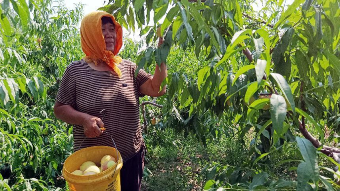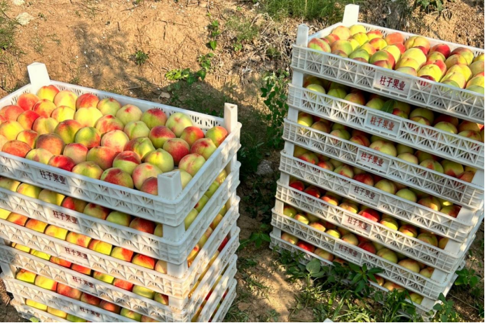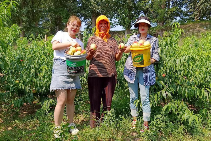 看着色泽红艳、肉质紧实的桃子,果农们露出了开心的笑容。