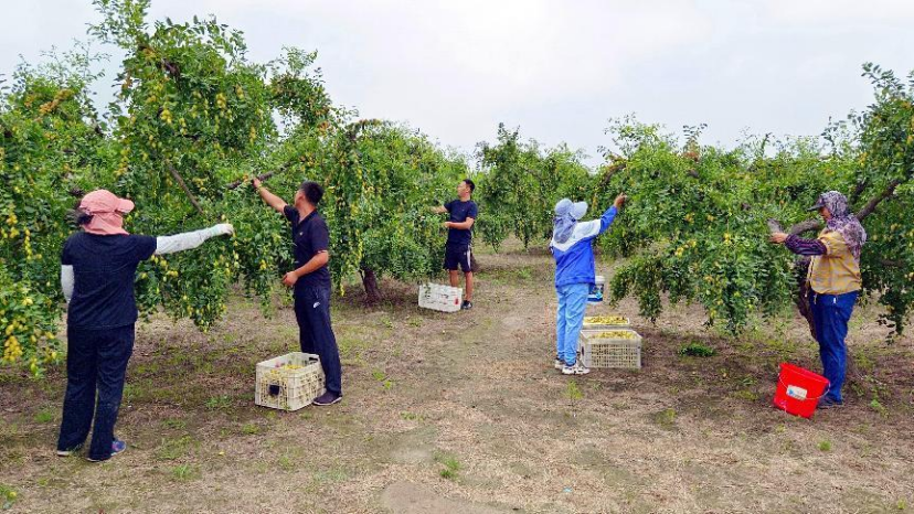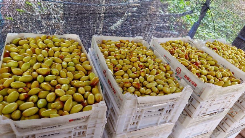 枣农们正忙着采摘鲜枣,享受着丰收的喜悦。