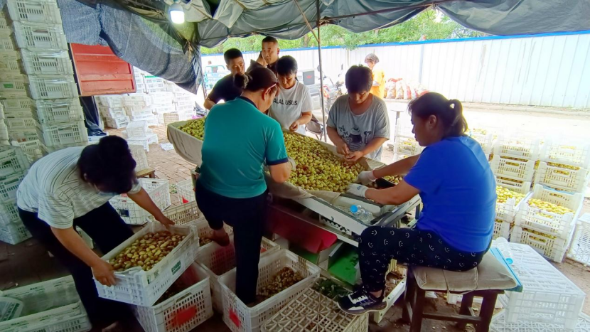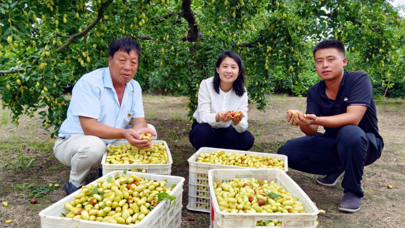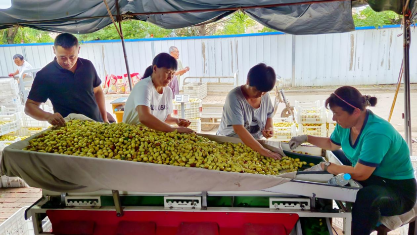 在东高庄村设立的临时中转站,分拣机器迅速将采摘下来的马牙枣进行分类,筛选出最优质的果子由批发商送往各地市场,实现好果卖好价。