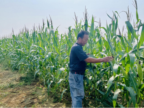 在李玉桥家的玉米地,一大片玉米长势正好。“估计10月中旬左右就能收获了,如果没有这场水的话,长得还能更好。”话音刚落,李玉桥拿着镰刀,走进了玉米地。
