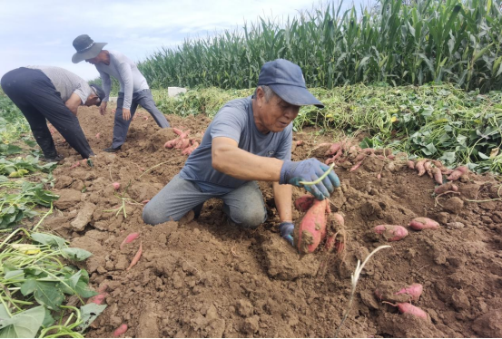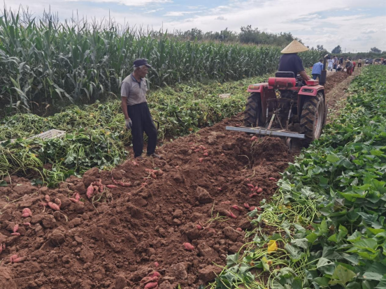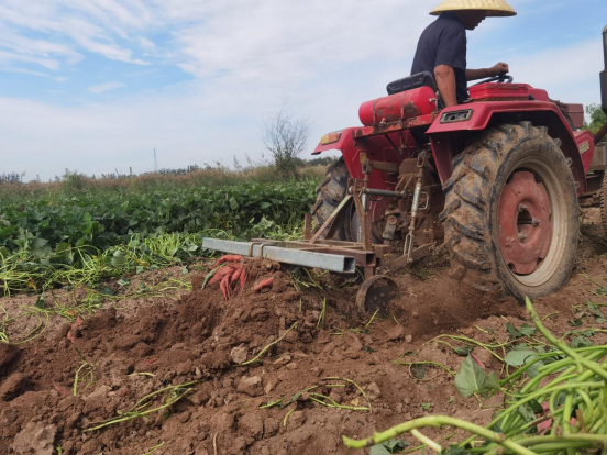 眼下,正是红薯大量收获上市的季节,在西翟庄镇贺新村,伴随着专用红薯收获机的轰鸣声,一个个红薯翻滚跳跃而出,村民们跟在收获机后面分工合作,去泥、装箱,田间地头一派繁忙景象。