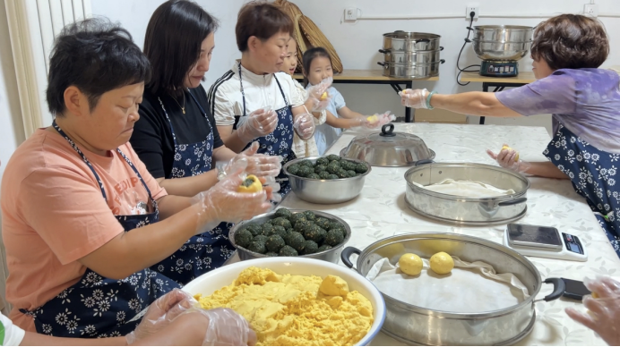 金黄的面皮包裹着鲜嫩的馅料,在人们手中团一团,便成了一个个圆滚滚的菜团子。品尝着亲手制作的菜团子,假期的时光也变得格外惬意。