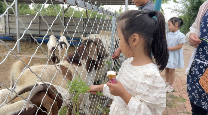 除了亲手采摘紫苏叶和包菜团子,西塘庄园里还有葡萄和玉米可供游人采摘。不仅如此,鱼塘内的鱼、虾、蟹正肥,等待着游人前来垂钓,小朋友还可以体验喂羊的乐趣。