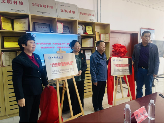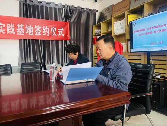 随后,天津外国语大学马克思主义学院与陈官屯镇在吕官屯村举行大中小学思政课一体化共建暨“行走的最强思想”实践教学基地签约仪式并共同揭牌。据了解,实践教学基地的建立,是创新大中小学思政课一体化建设的积极探索,不仅为天津外国语大学创新教学、走进实践提供了平台支撑,同时也为吕官屯村进一步加强与高等学校深度合作奠定了坚实基础。