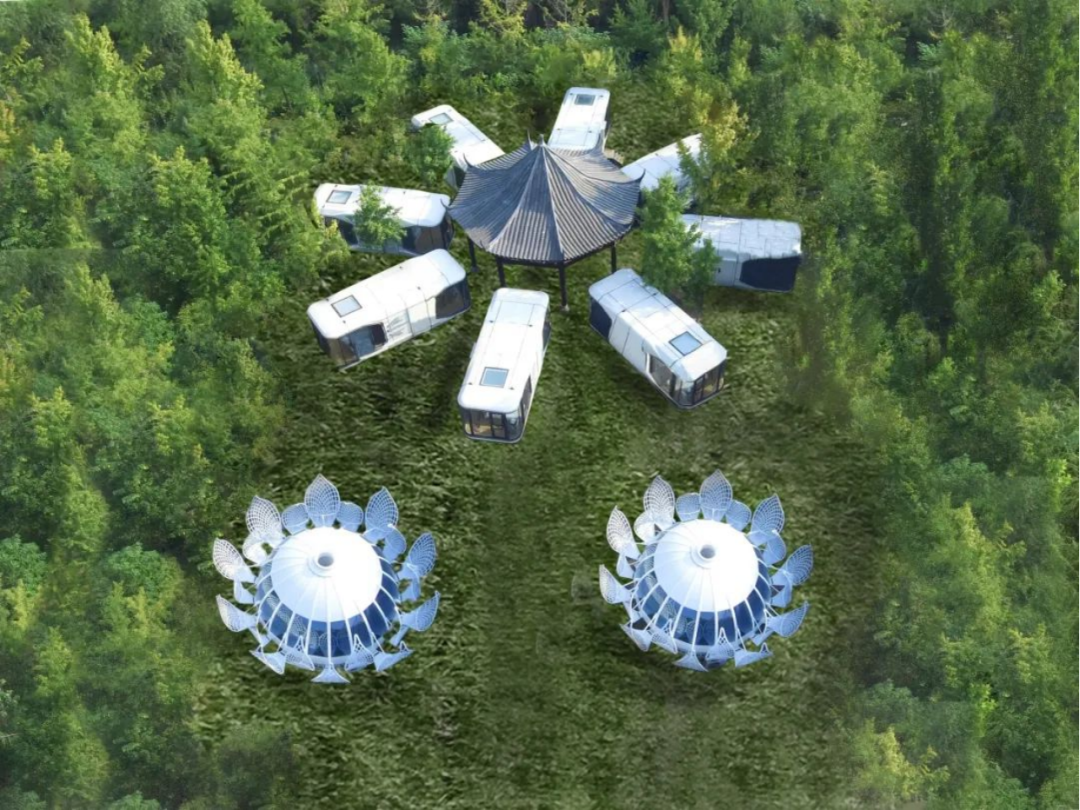 ——依托帐篷、房车等打造的集吃、住、玩于一体的梦境露营地和烧烤基地;穿梭于林间作业道路的森系卡丁车;太空舱、复兴号特色民宿;VR体验馆;