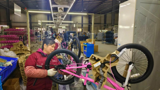 “目前,车间两条生产线和轮组都正常运行,产能维持在一天2000台左右。现在生产的这批订单将发往美亚,2月份和3月份的订单已经排满,2024年的生产计划超过50万台,整体要比2023年超出10%。”优贝(天津)自行车有限公司生产部经理王景生说。
