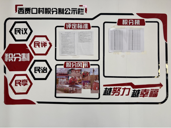 “积分制施行后效果特别好!现在很多村民主动参与基层治理。村里变得干净整洁,大家的积极性也更高了,生活质量也跟着提升了,积分制让西贾口村实实在在地改变了。”村民马丽楠说。