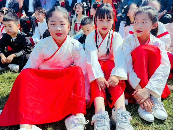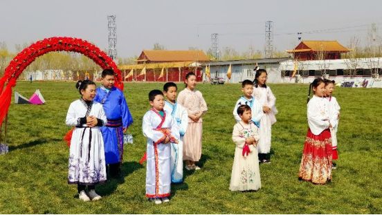 花朝节历史悠久,是中华民族传承千年的岁时节令,承载着古人“敬天惜物、顺应自然”的生态智慧与“百花竞放、万物共生”的美好愿景。活动现场,伴着轻柔舒缓的古典音乐,身着色彩斑斓古装的小花神们在宽阔的草坪上款款而行,宛如从历史画卷中走来,成为一道靓丽的风景线。诗朗诵《梦回唐朝》,表演者身着飘逸的唐制汉服,以抑扬顿挫的吟诵,带领观众穿越千年,领略大唐盛世的雄浑与辉煌;而身着各朝代汉服的表演者,深情演绎《诗词歌赋里的中国》,让观众触摸刻进民族血脉的文字,聆听跨越千年的文化回响;在《听春的声音》节目中,身着淡雅汉服的朗诵者,用灵动的声音奏响万物苏醒的乐章……