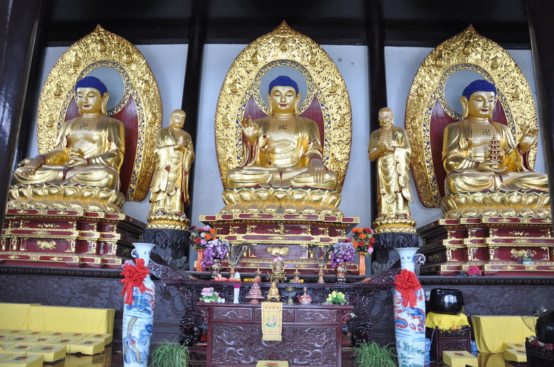 现在,全寺有三重大殿、20座偏殿及配套僧人禅房。寺院门楼高19.9米,宽29.9米,用汉白玉石雕刻99尊佛、99条龙。门楼与大殿之间建有仿天安门金水桥,桥下为信教群众放生的放生池。天王殿供奉主佛弥勒托佛,背佛:韦陀佛,两侧:四大天王。大雄宝殿全部为木质结构,为华北地区唯一木质仿古建筑,殿内供奉释迦牟尼佛 (中)、药师佛(东)、阿弥托佛(西),两侧为十八罗汉,佛身全部用香樟木贴金制做,后为海岛观音,后两侧为普贤菩萨和文殊菩萨。文殊菩萨殿供奉千波文殊,为紫铜像身贴金。文殊菩萨殿两侧为东方三圣和西方三圣殿。后殿藏经阁为最高殿堂,两侧是诵经房,白塔存放镇宝物和舍利佛球。