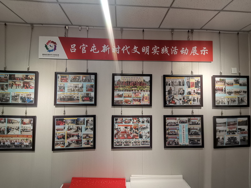 耕读之家是占地220平米仿古建筑建筑风格的乡村宅院,院墙和院落中以实景与壁画写意相结合的方式,展现了清末耕读农户的婚房、堂屋、厨房、书房、上房、茶馆、豆腐坊、马厩等八个生活场景,每个场景都散发着浓浓的历史气息。虽然每个场景空间并不大,但属于吕官屯人生活标签的“家伙式儿”——瓷器、烟具、茶具、炊具,样样俱全,屋内外的壁画展现出吕官屯具有学校雏形的塾屋教育,以及农忙时的田间景象,生动具体地反映了清末传统乡村生活生产、文化传承、婚庆习俗等内容,全面记录传统乡村社会的文明传承历程,全方位展示出吕官屯百年古村的历史元素,悠远运河文化的沿革。“耕读之家”这个名字,反映了吕官屯人崇尚文化、追求文明的历史,“耕读之家”陈列馆在发掘 “运河文化”、“私塾文化”“民俗文化”等本土特色优良乡村文化的过程中起着重要作用,对推进吕官屯村乡村振兴进程有着深远意义,已经成为吕官屯村开展文化活动、党史教育、爱国主义教育的重要平台,激励着吕官屯人尤其年轻人的向学之心,启迪吕官屯人的历史自信、文化自信,培养新一代的民族自豪感和爱国主义情操。