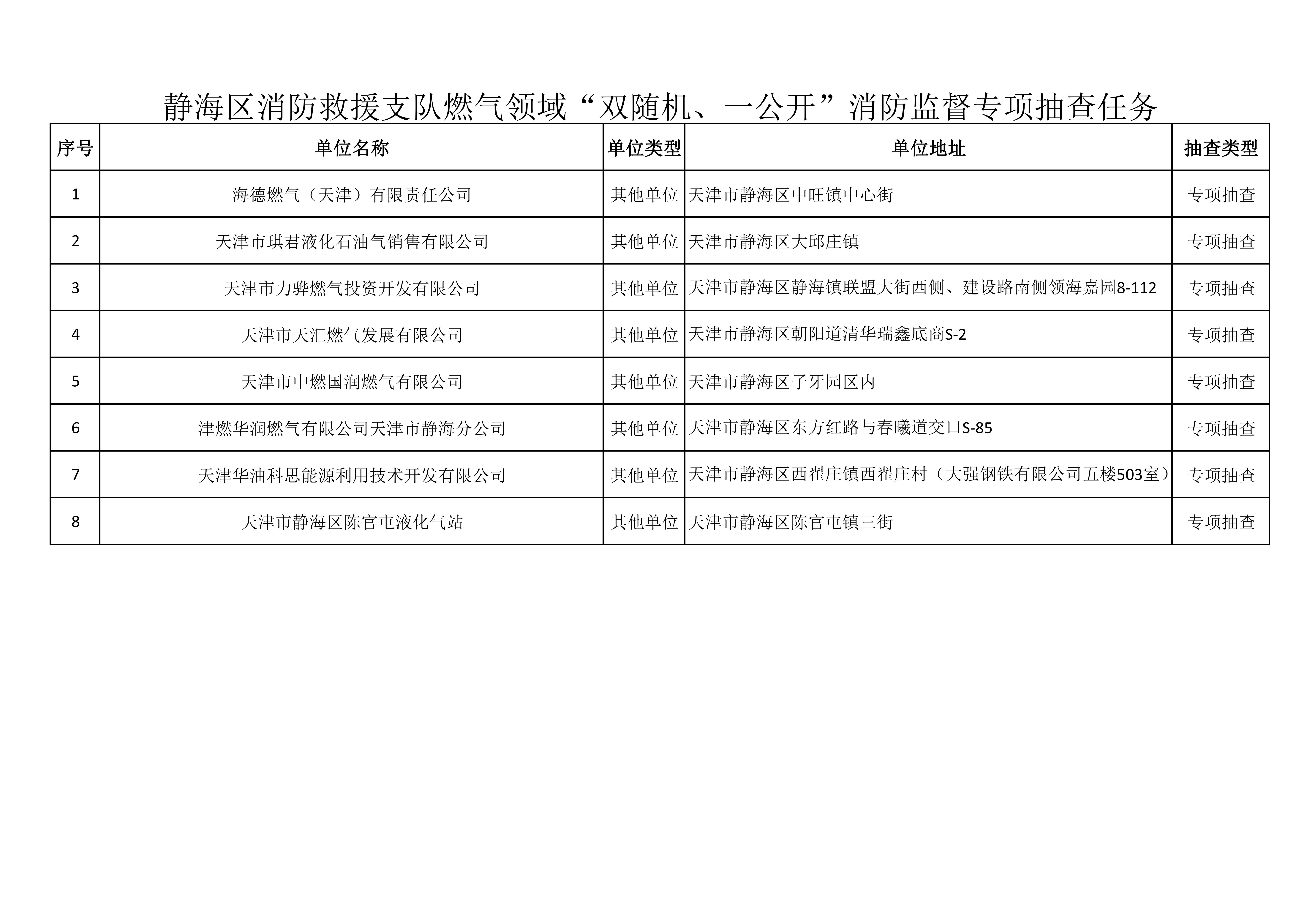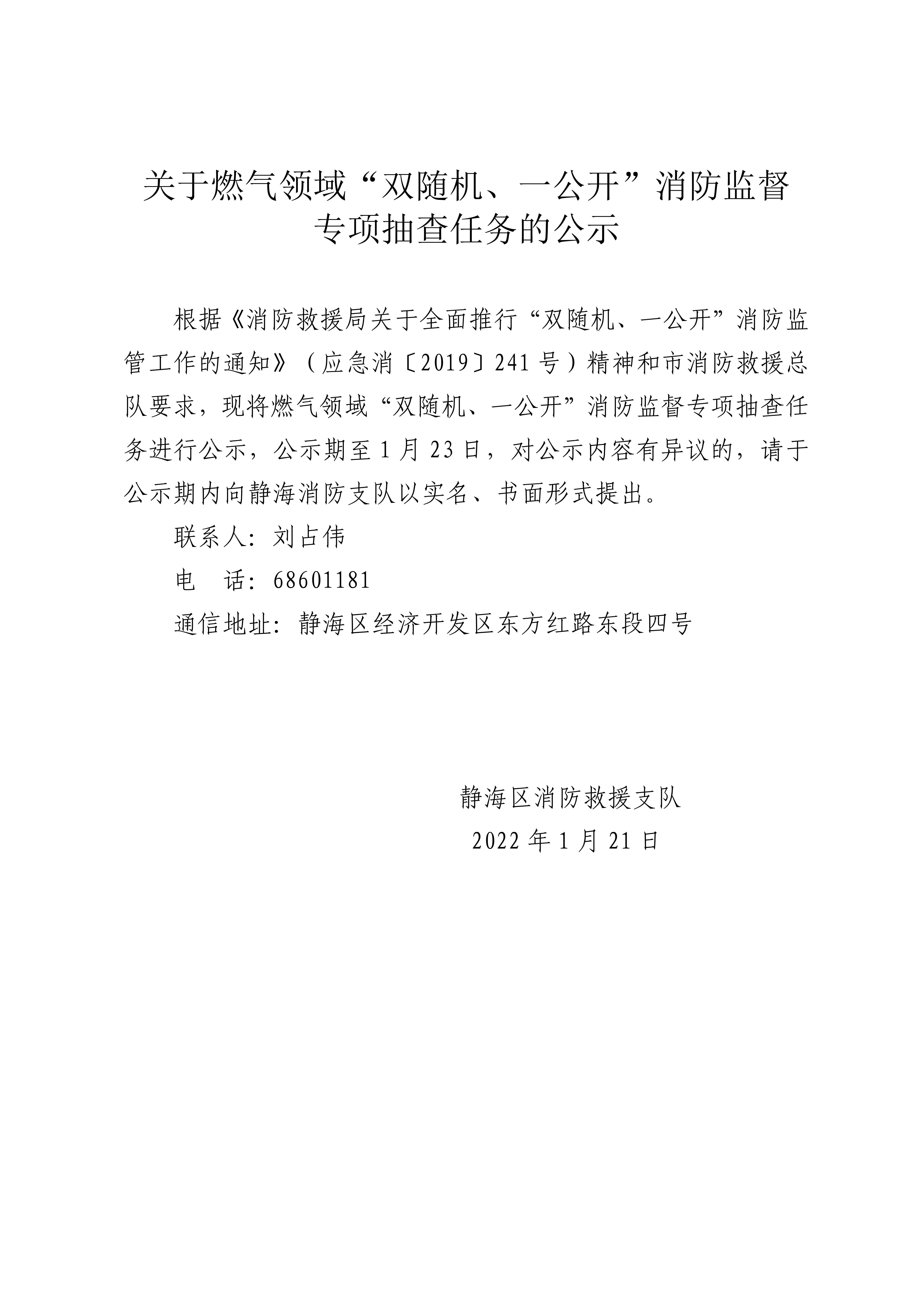 关于燃气领域“双随机、一公开”消防监督专项抽查任务的公示