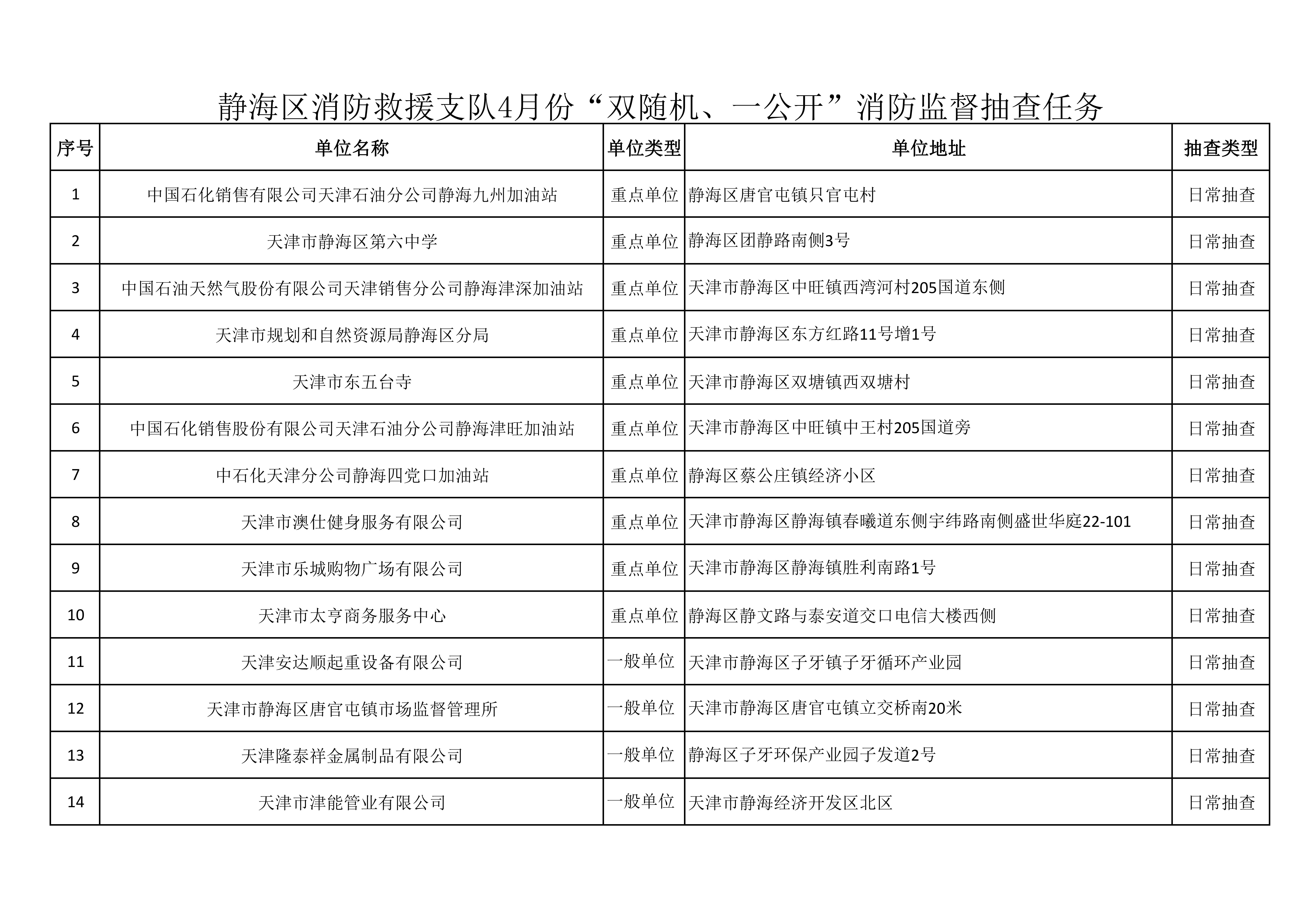 关于4月份“双随机、一公开”消防监督抽查任务的公示