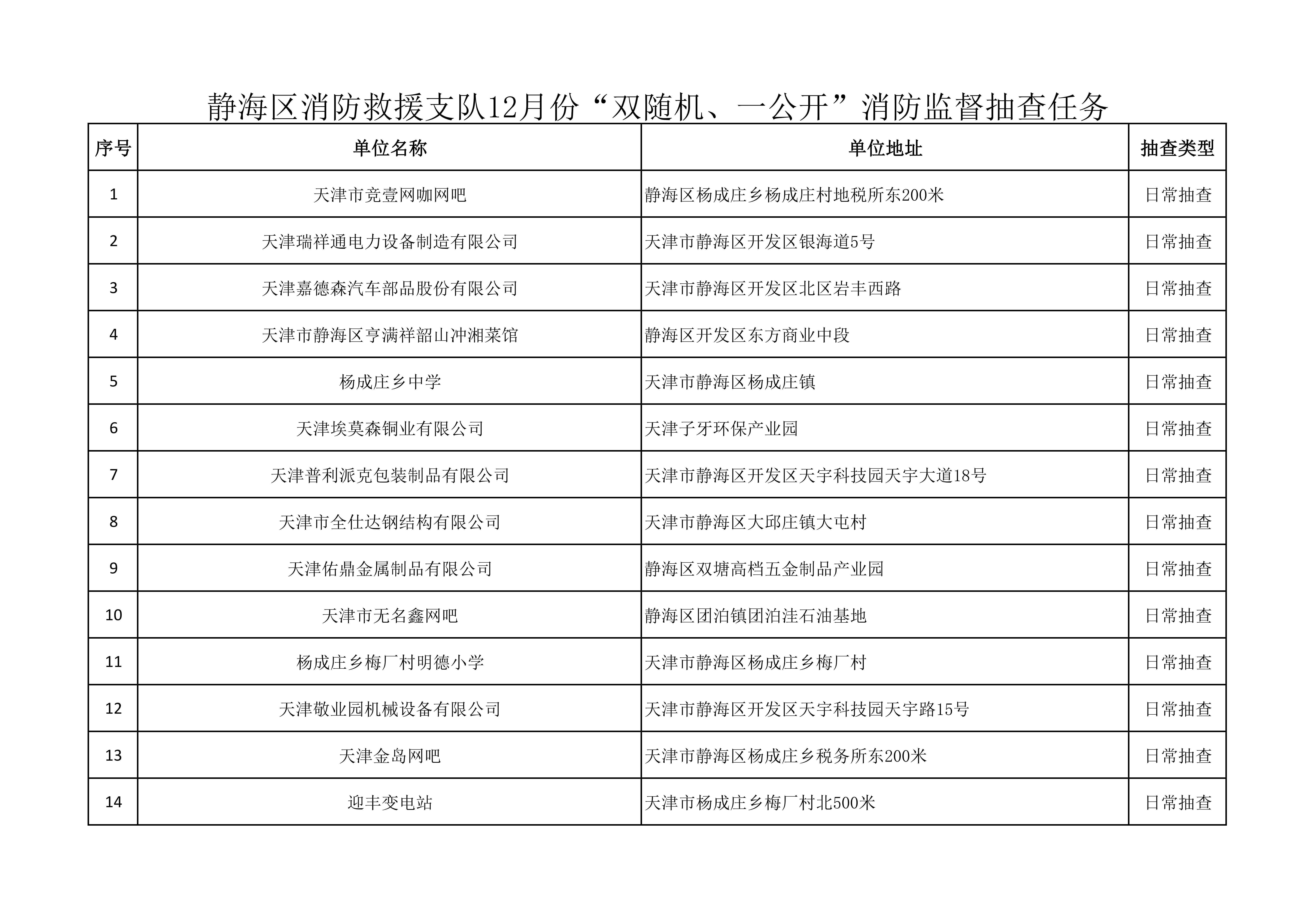 关于12月份“双随机、一公开”消防监督抽查任务的公示