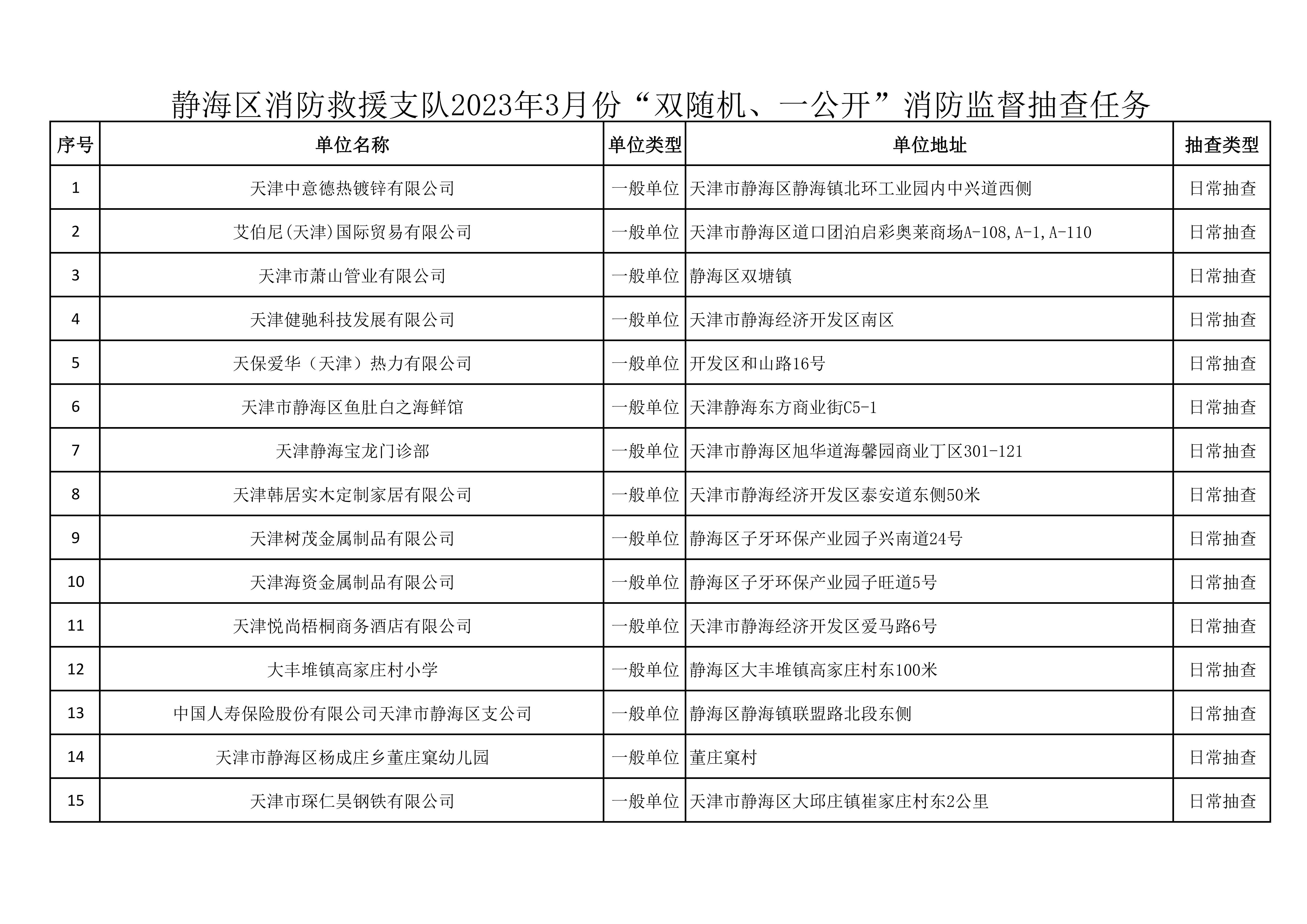 关于3月份“双随机、一公开”消防监督抽查任务的公示