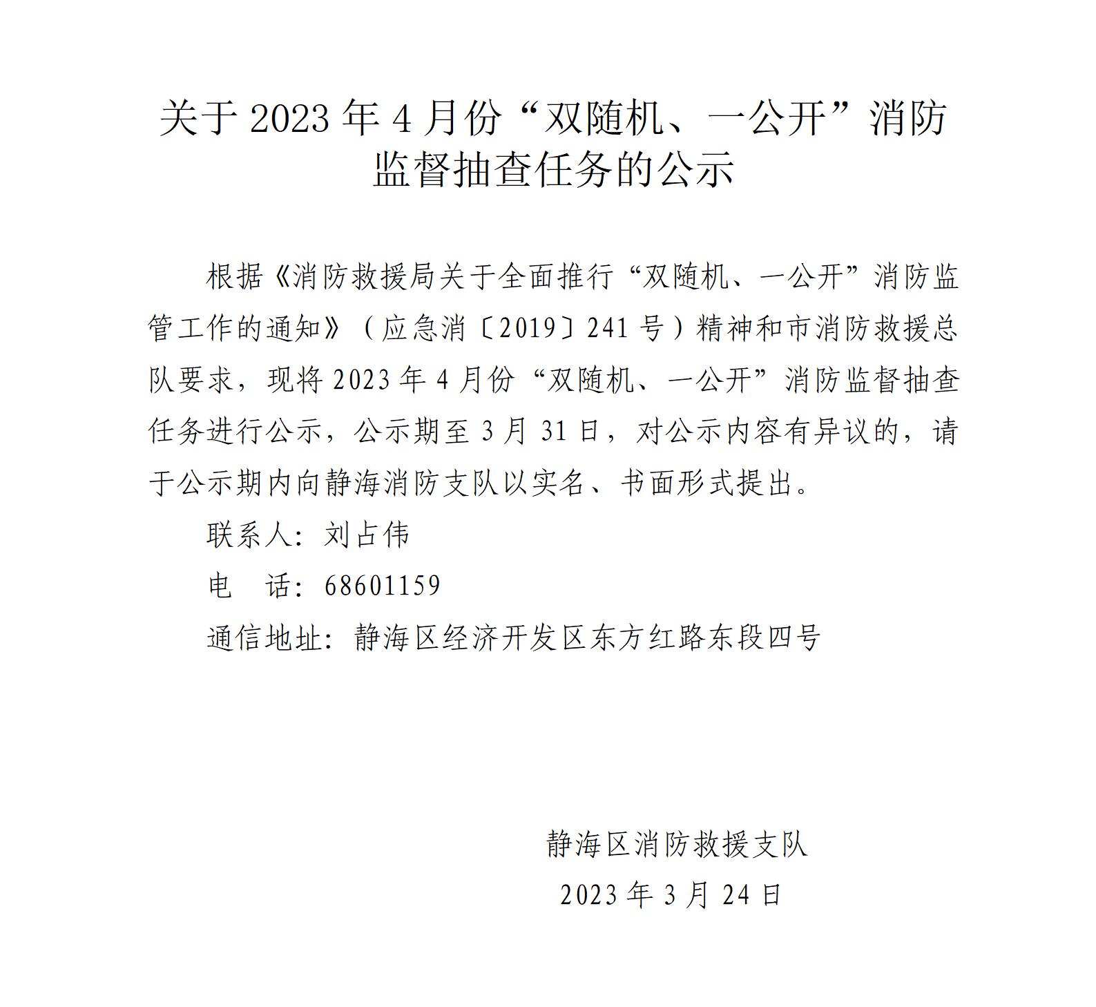 上一篇文章: 关于3月份“双随机、一公开”消防监督抽查结果的公示