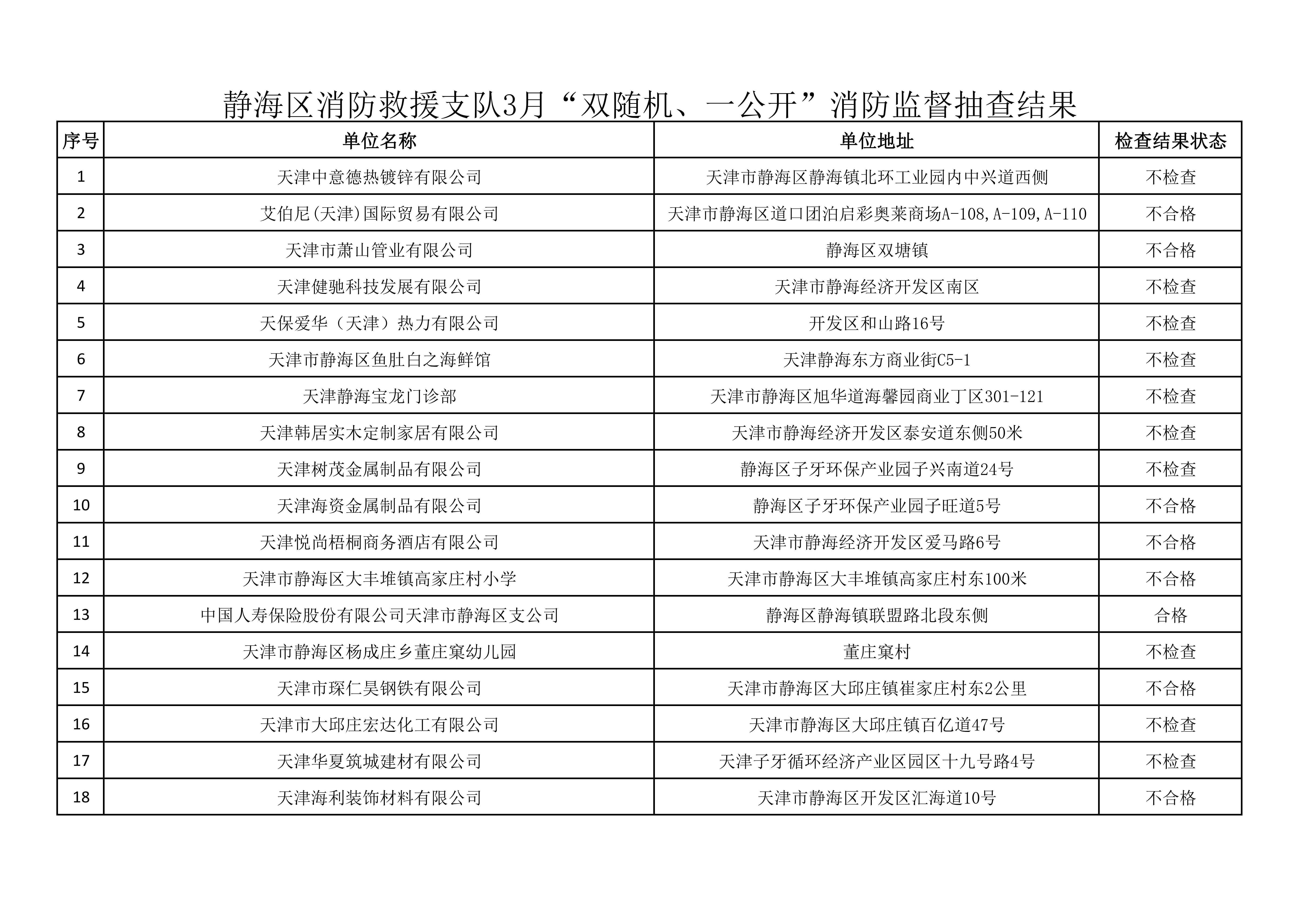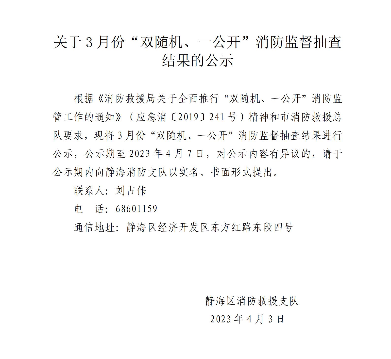 关于3月份“双随机、一公开”消防监督抽查结果的公示