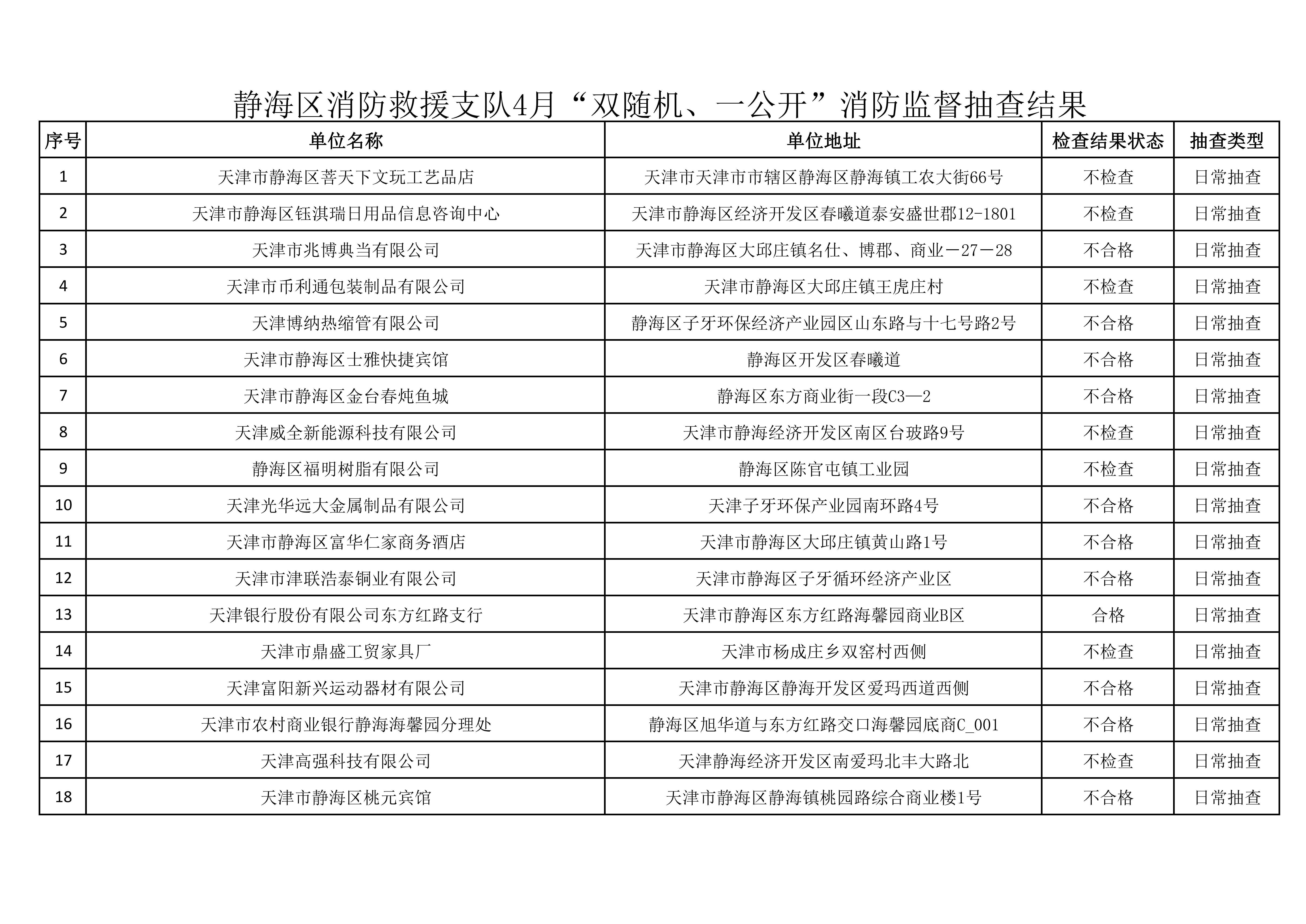 关于4月份“双随机、一公开”消防监督抽查结果的公示