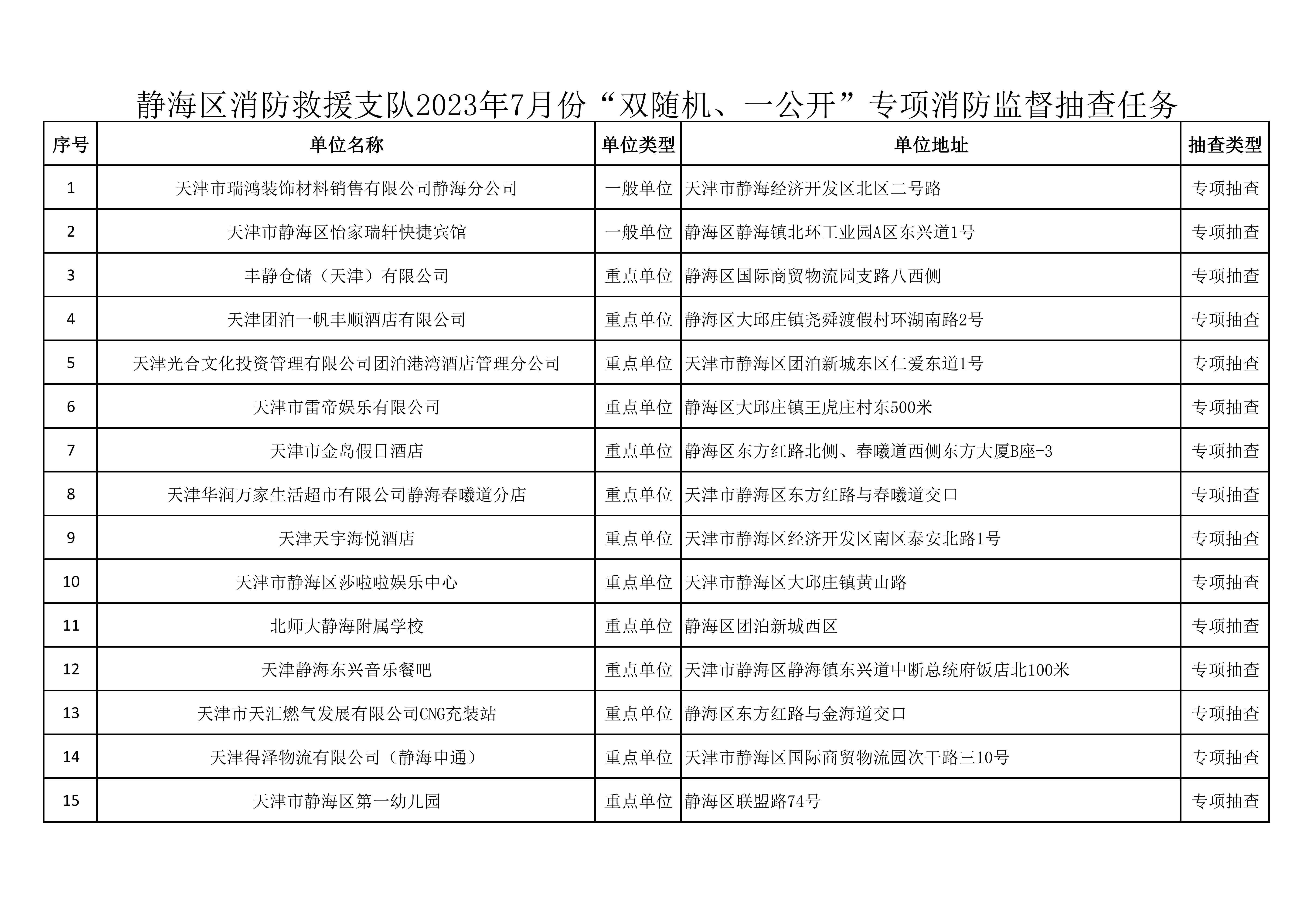 关于7月份“双随机、一公开”专项消防监督抽查任务的公示