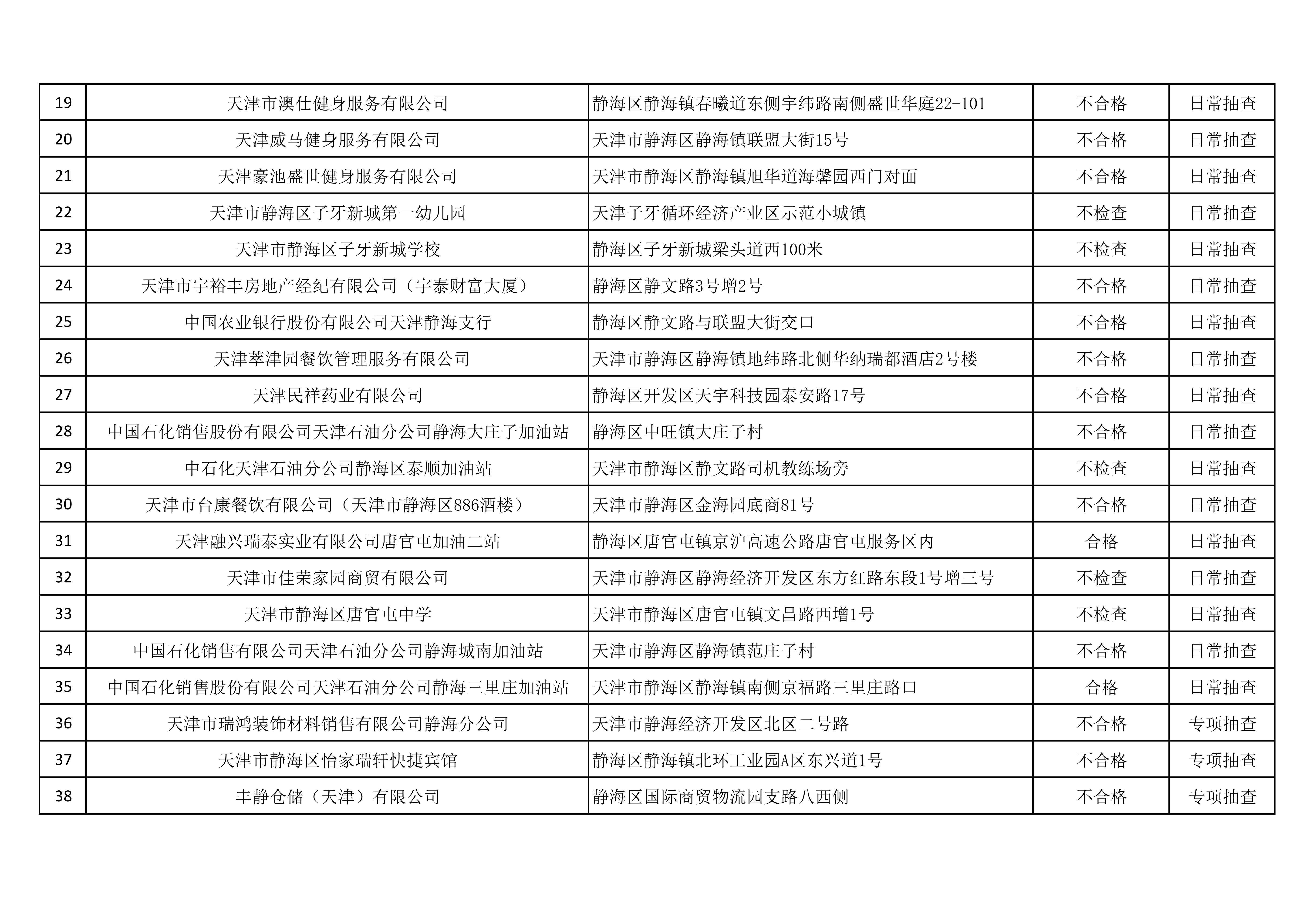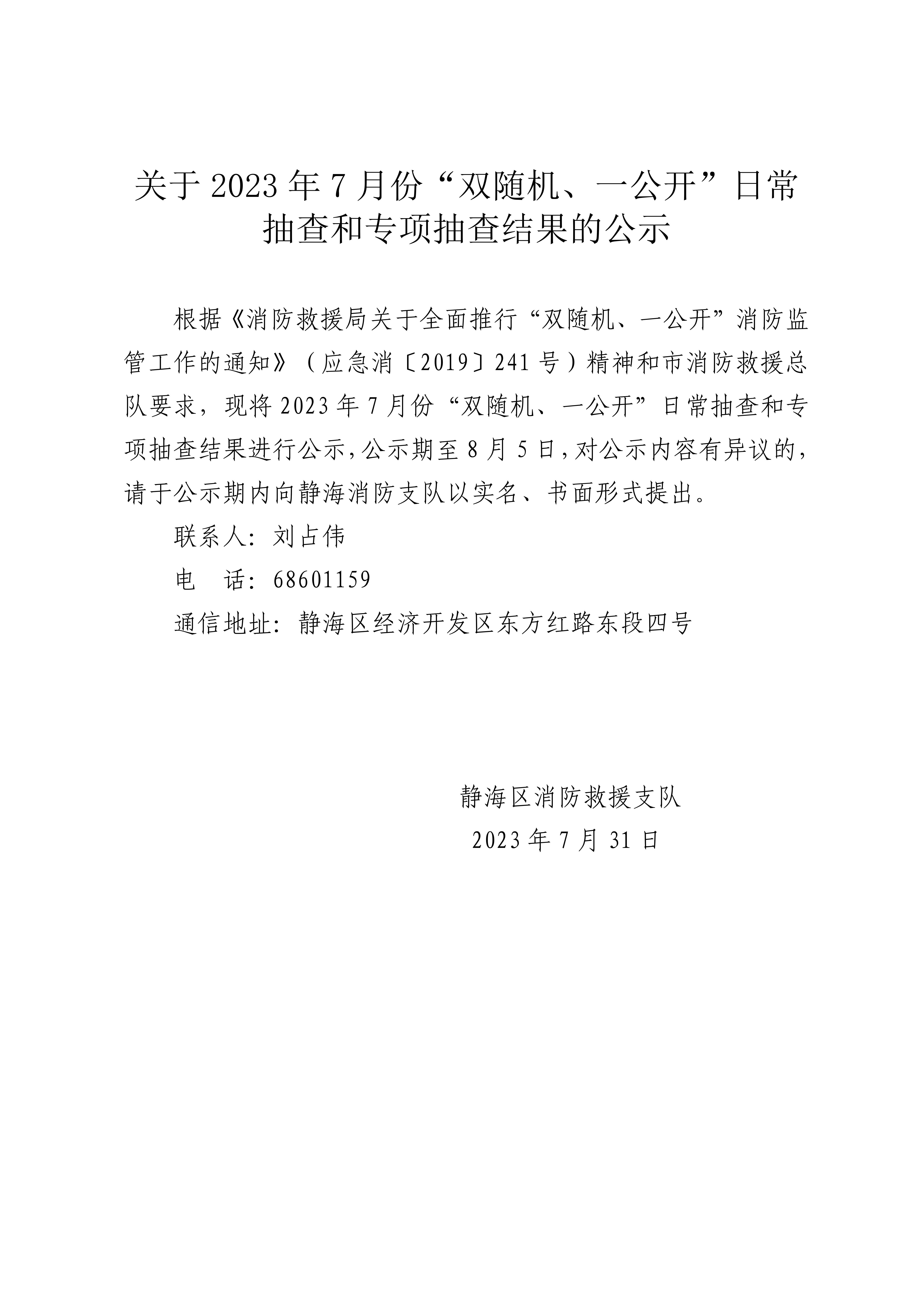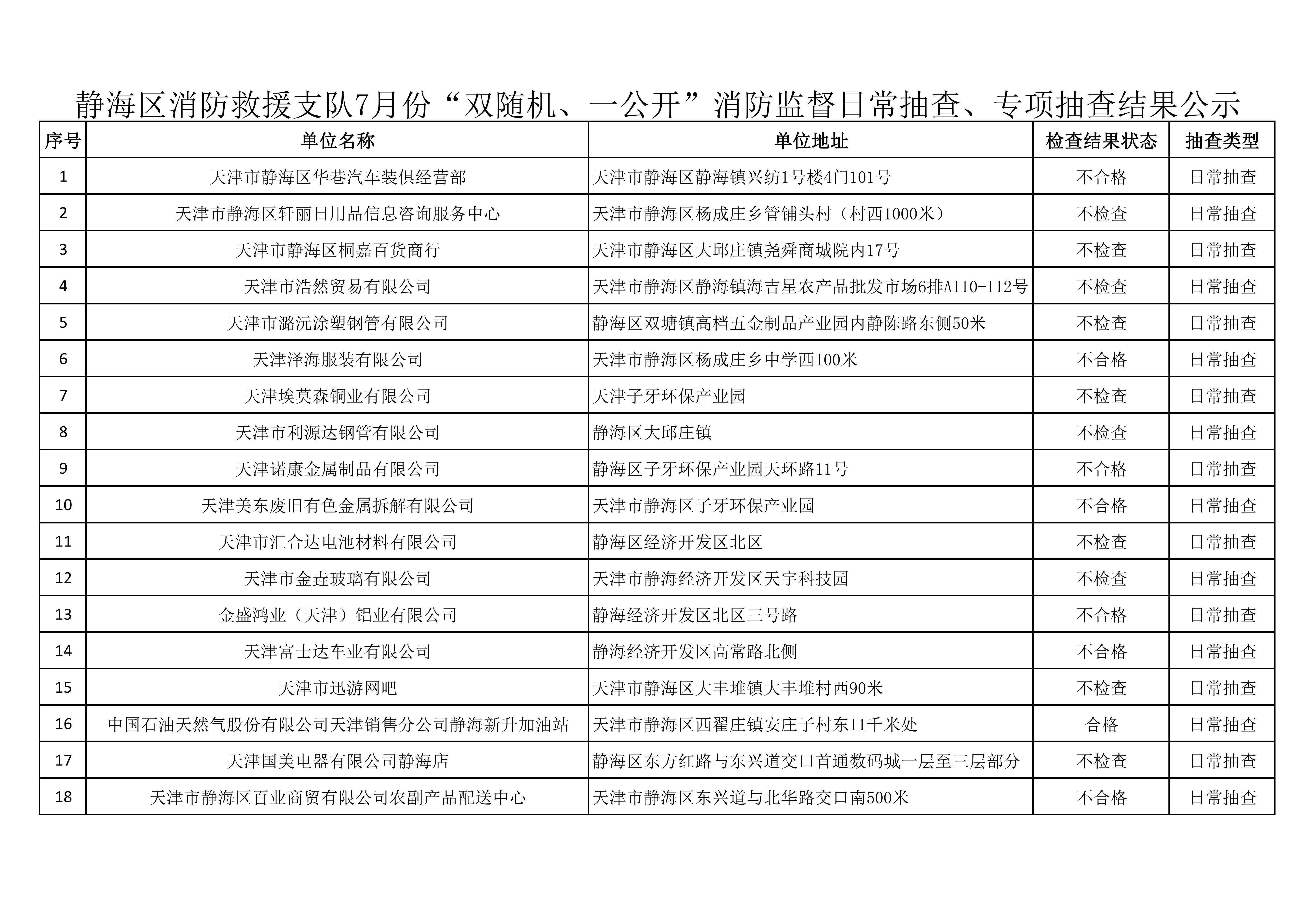 关于7月份“双随机、一公开”消防监督日常抽查、专项抽查结果的公示