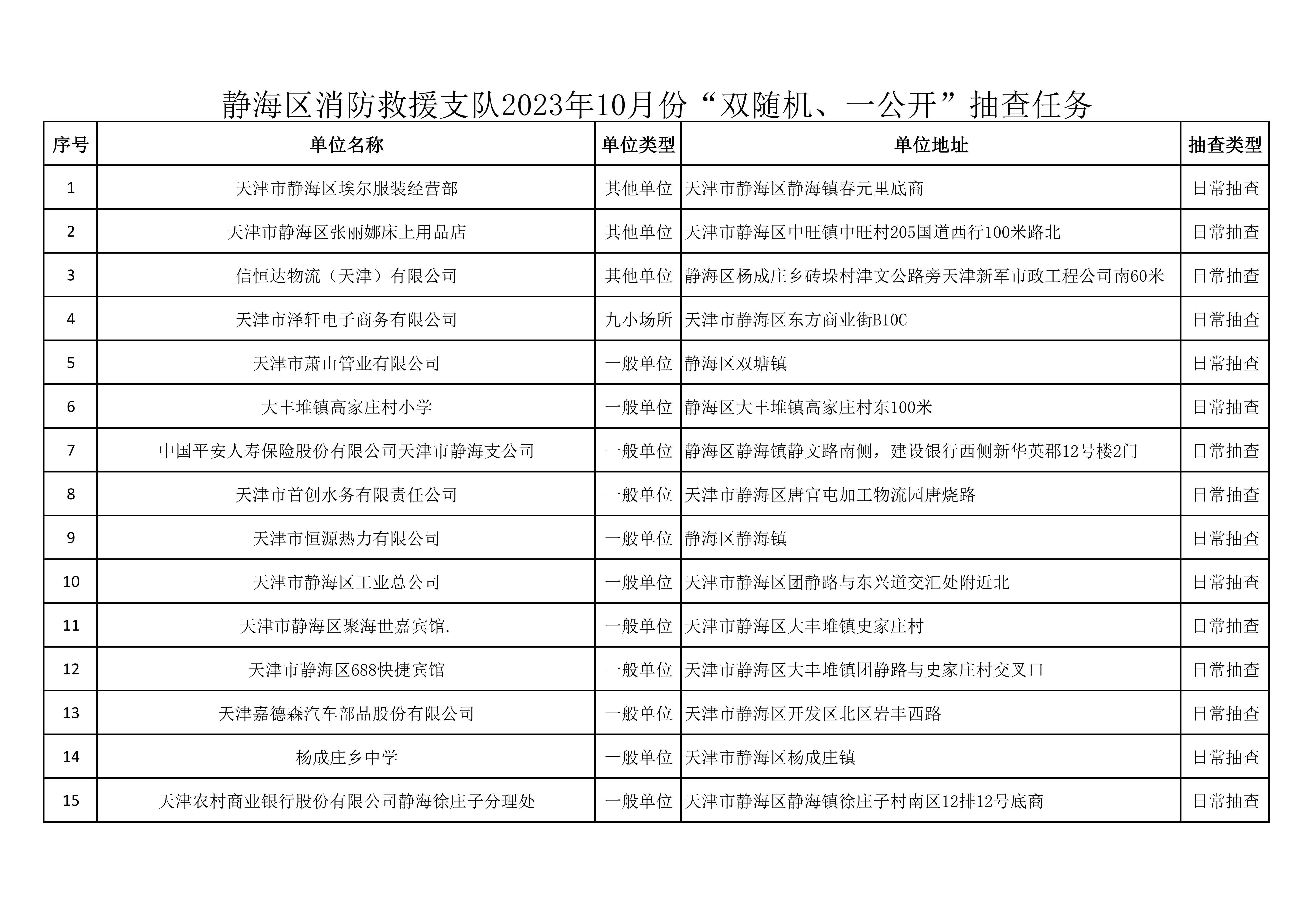 关于10月份“双随机、一公开”消防监督抽查任务的公示