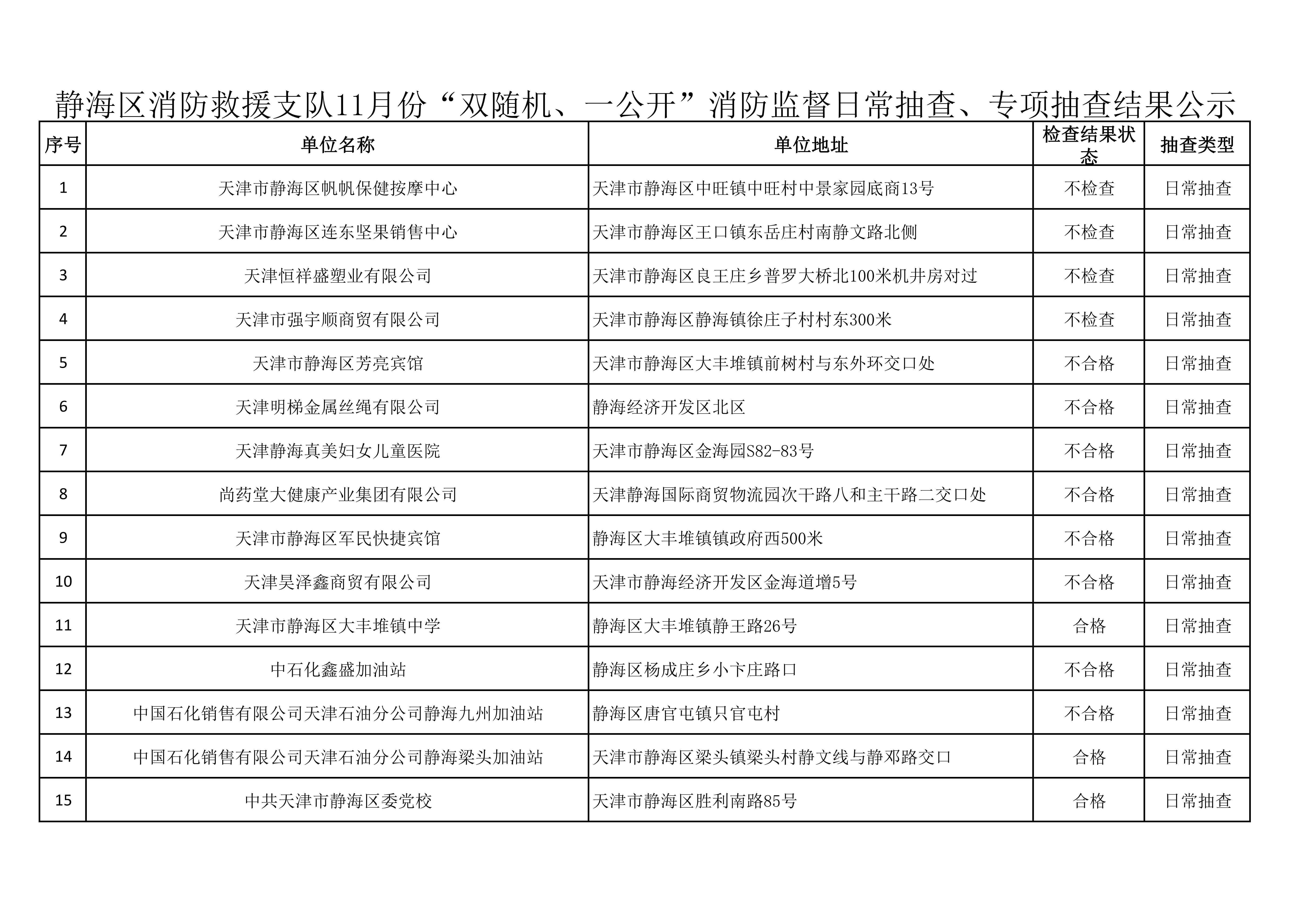关于11月份“双随机、一公开”日常抽查和专项抽查结果的公示