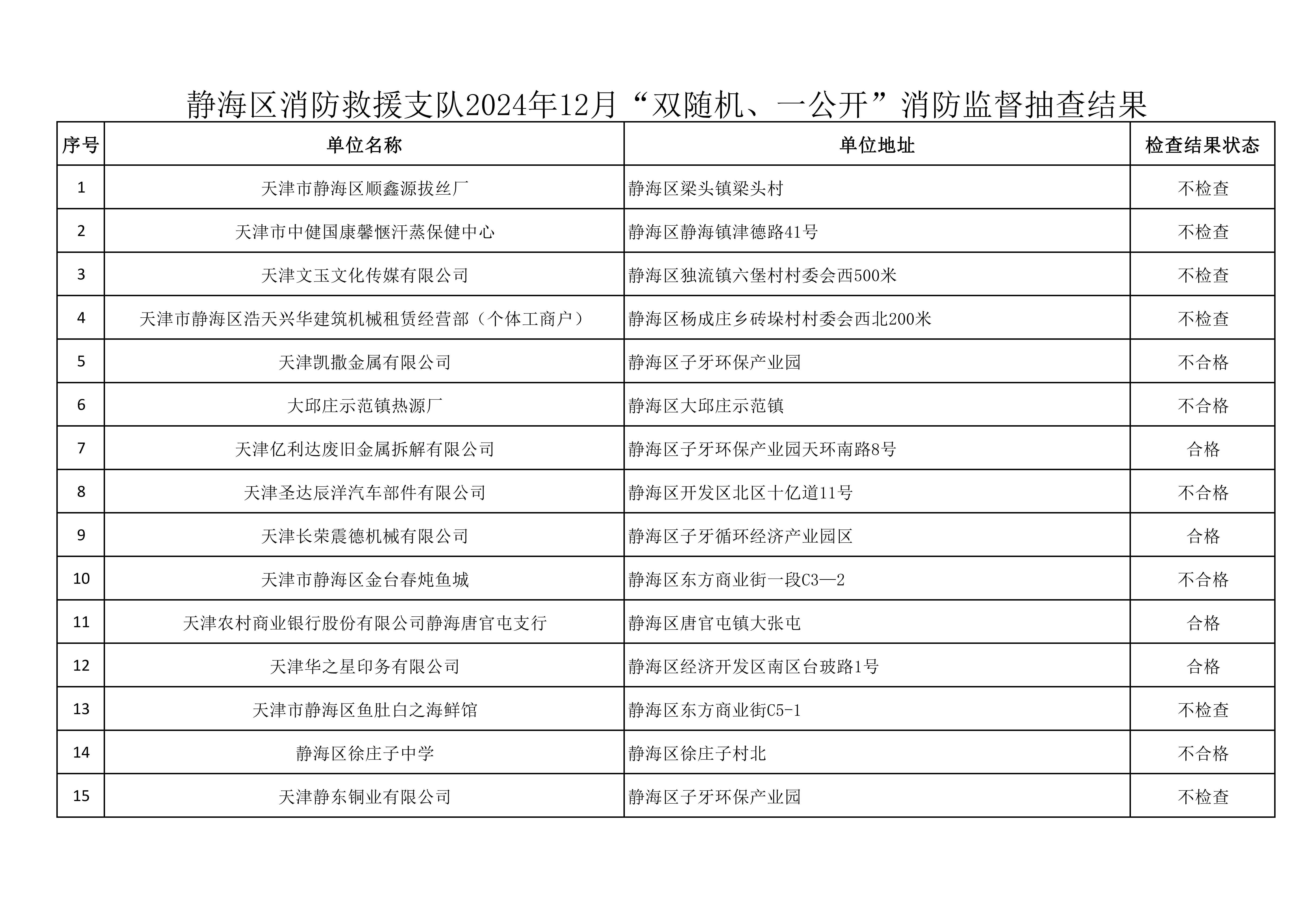 关于12月份“双随机、一公开”消防监督抽查结果的公示