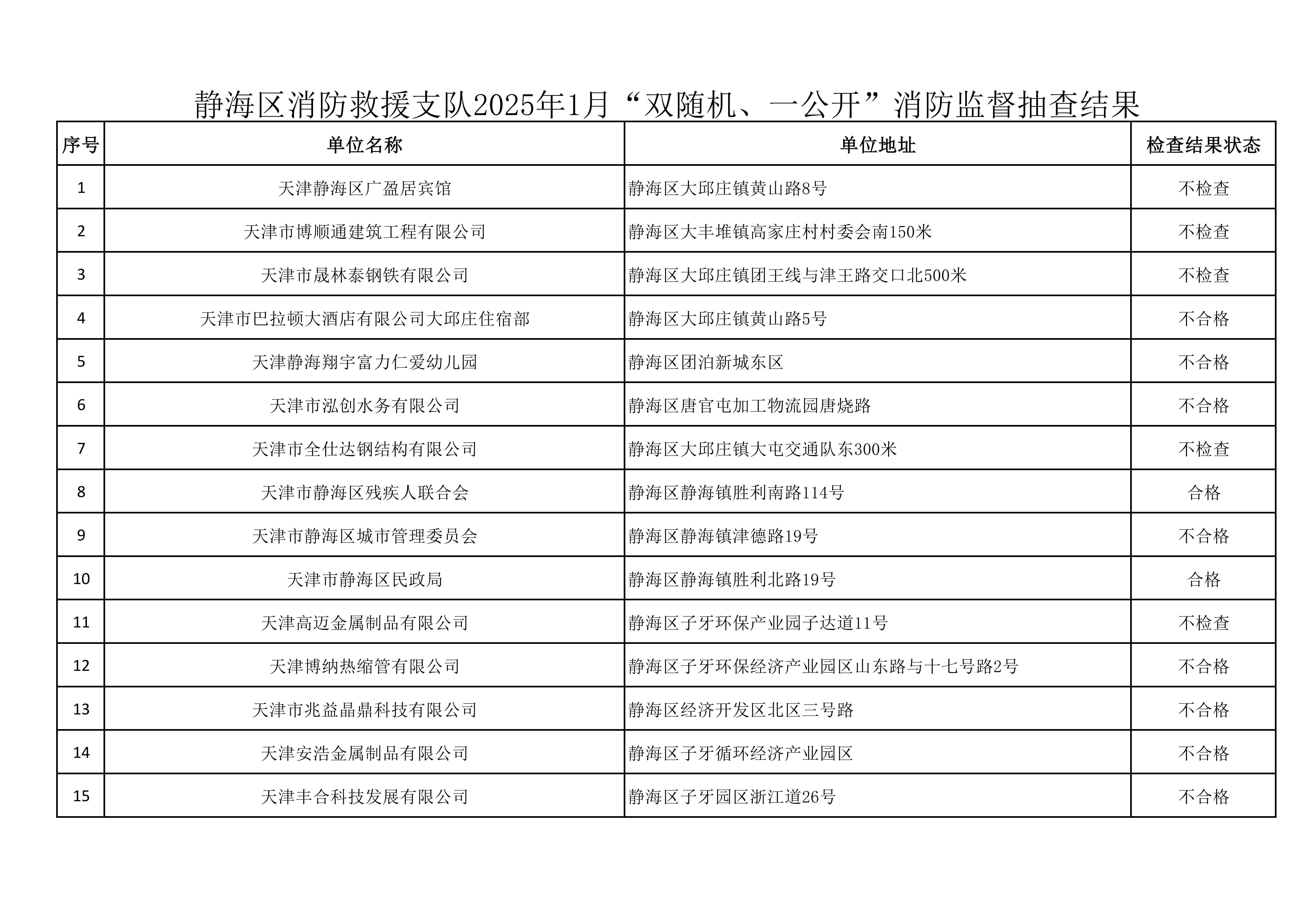 关于1月份“双随机、一公开”消防监督抽查结果的公示
