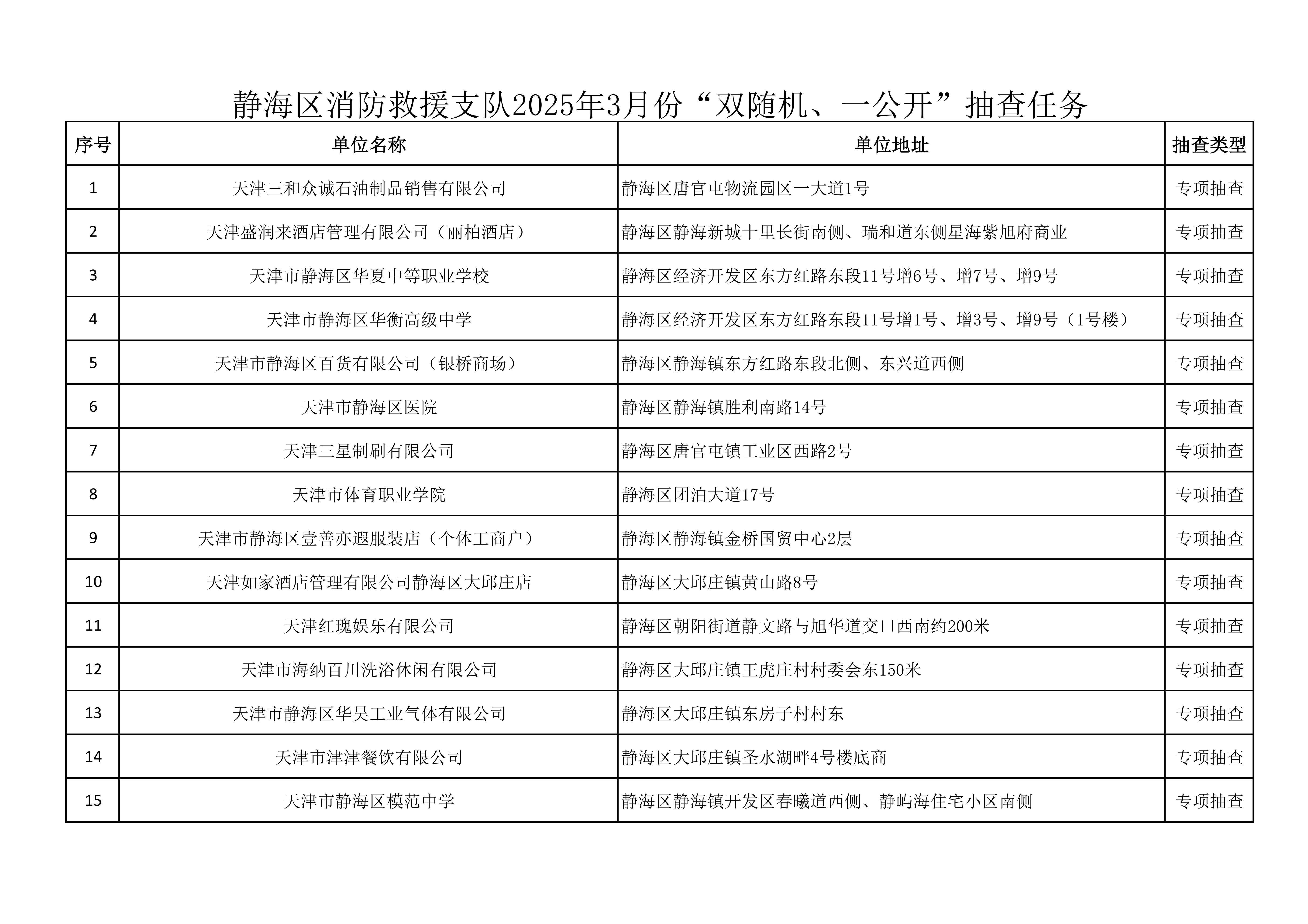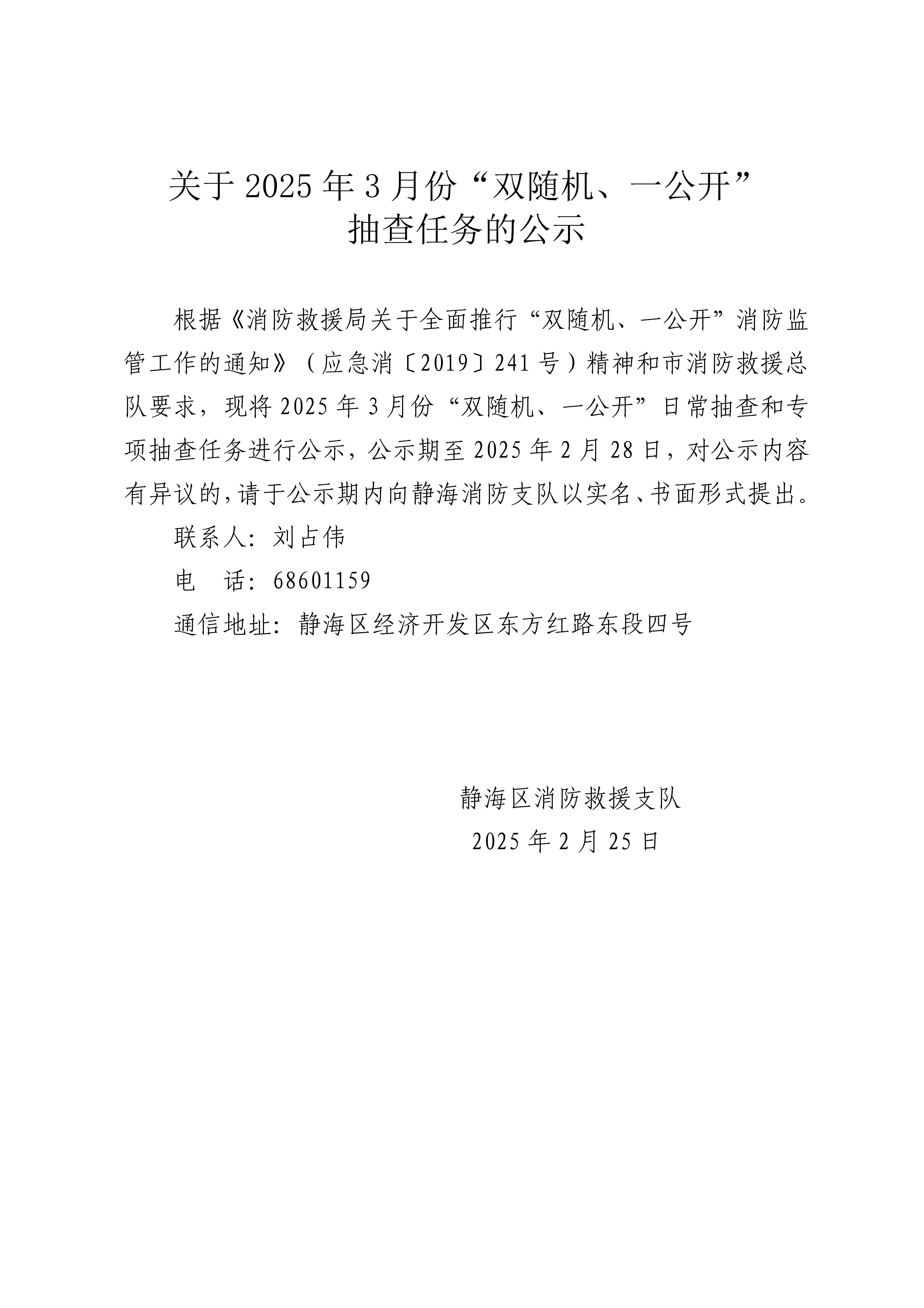 关于2025年3月份“双随机、一公开” 抽查任务的公示