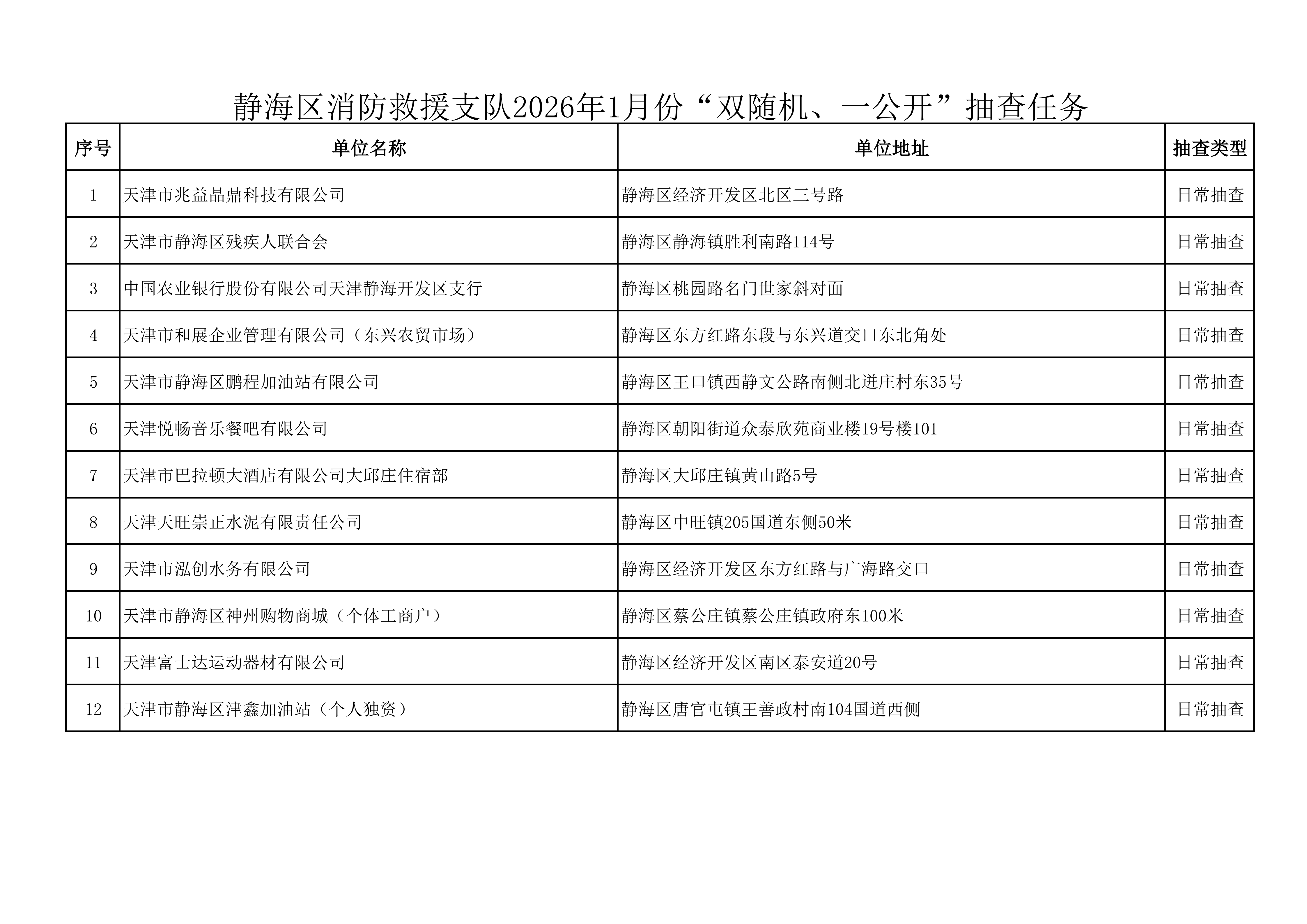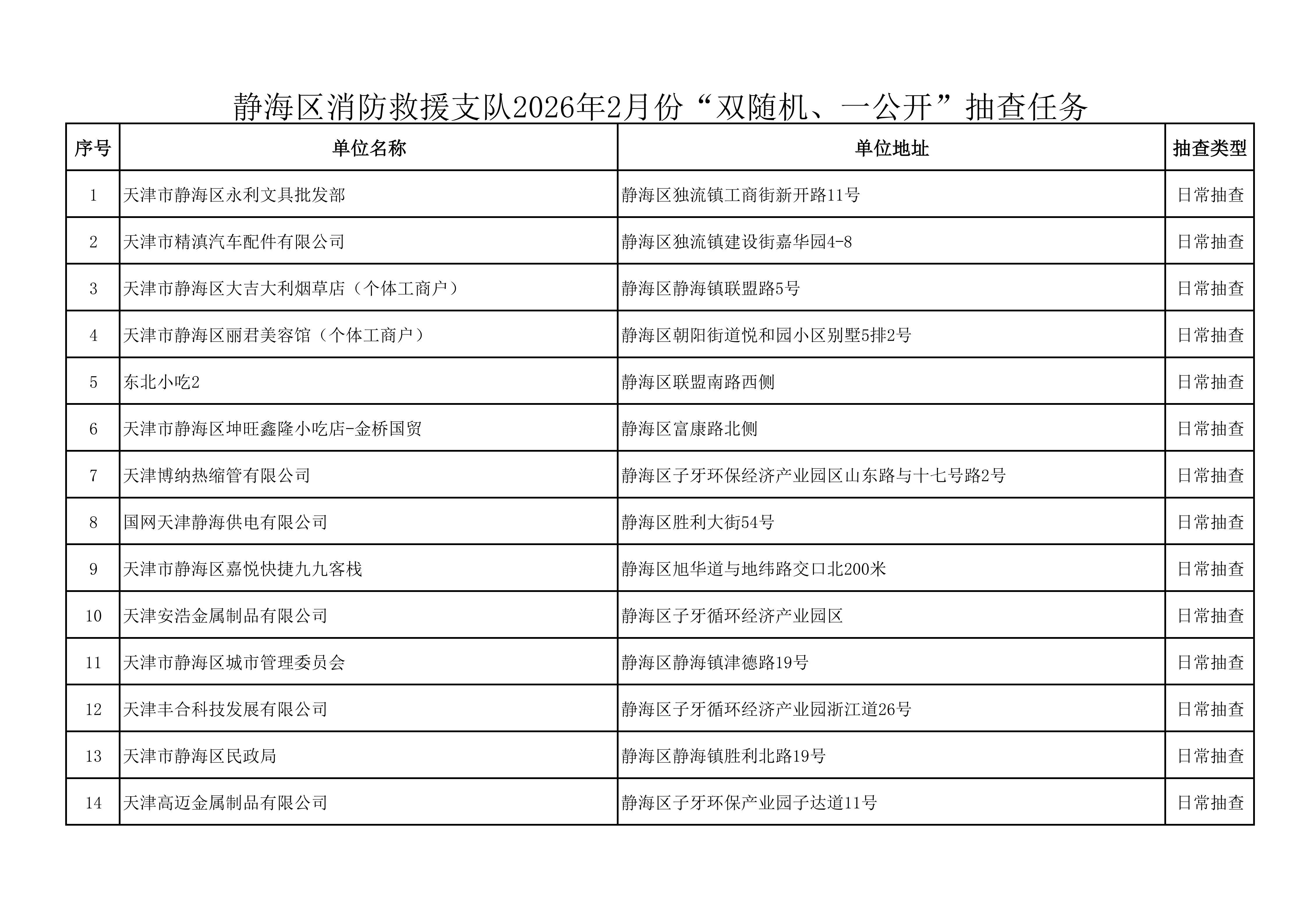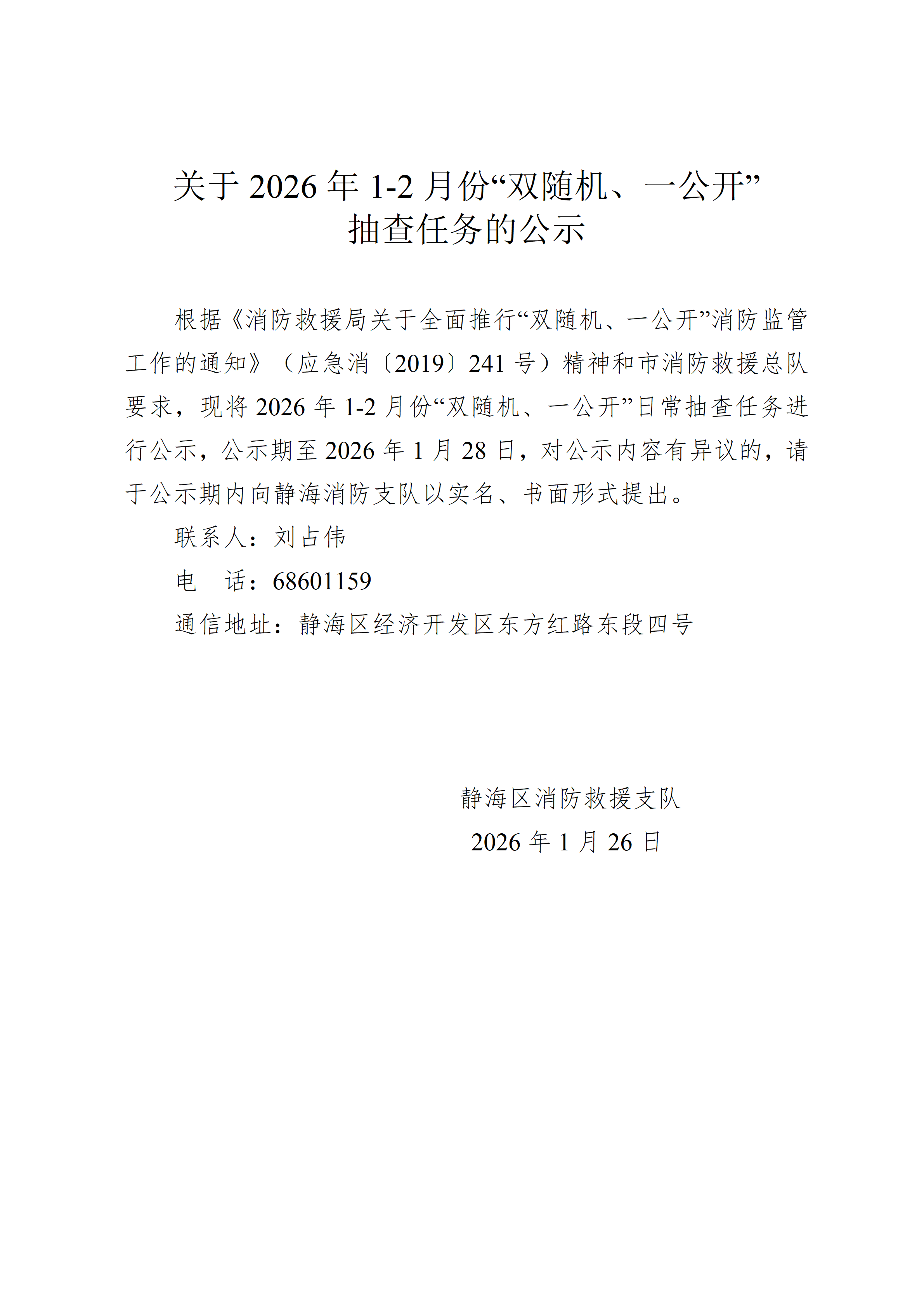 关于2026年1-2月份“双随机、一公开”消防 监督抽查任务的公示