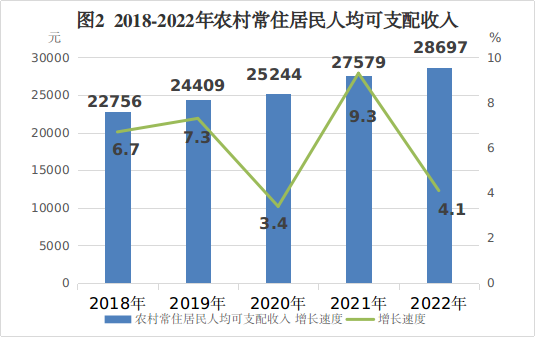 居民收支稳定增长。根据住户调查数据,全年常住居民人均可支配收入35168元,比上年增长3.4%。按常住地分,全年农村居民人均可支配收入28697元,比上年增长4.1%,其中工资性收入19478元,比上年增长6.6%;经营净收入4033元,比上年下降3.8%;财产净收入1556元,比上年下降5.2%;转移净收入3630元,比上年增长4.6%。城镇居民人均可支配收入41931元,比上年增长2.9%,其中工资性收入26182元,比上年增长4.9%;经营净收入5093元,比上年下降1.4%;财产性净收入4366元,比上年下降4.9%;转移净收入6290元,比上年增长3.9%。全年常住居民人均生活消费支出22783元,比上年下降2.7%。按常住地分,农村常住居民人均生活消费支出19559元,比上年增长3.2%;城镇常住居民人均生活消费支出26152元,比上年下降6.9%。