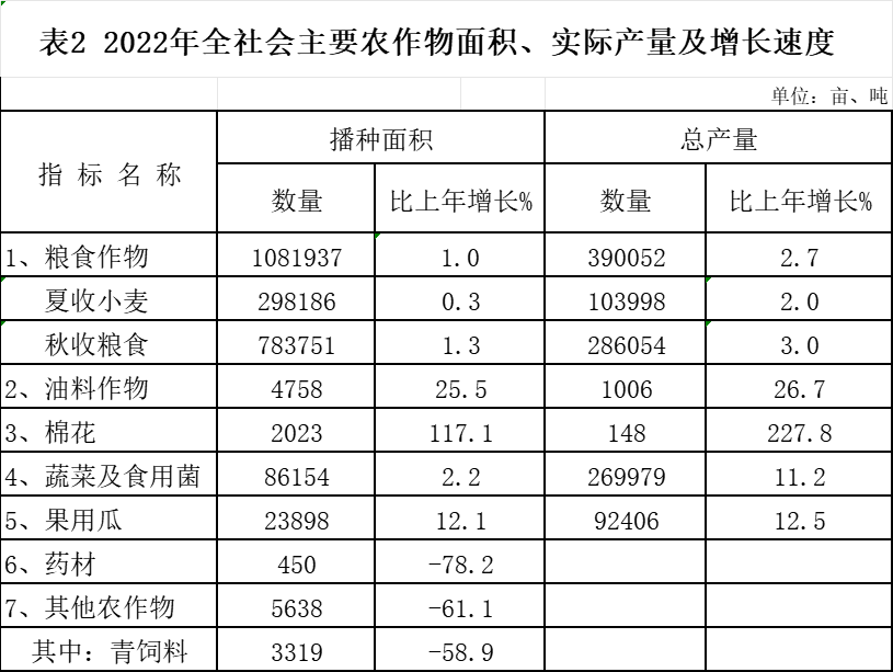 农业生产持续增长。全年农林牧渔业增加值30.43亿元,按不变价格计算,比上年增长3.1%。全年粮食产量39.01万吨,比上年增产2.7%,播种面积为108.19万亩,比上年增长1.0%。