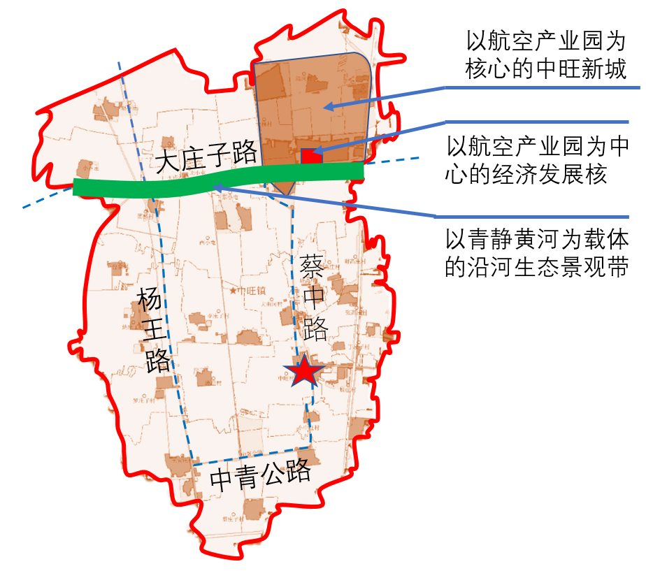 “十四五”期间,着眼产业能级提升和生态环境保护,合理利用镇域空间,优先布局发展高端新兴工业产业和优质高效农业产业,促进京津冀协同发展,实现乡村振兴,使中旺镇成为靓丽天津的南大门。到2025年全面建成“新型工业示范镇、现代农业特色镇、产城融合幸福镇”。总体发展定位为: