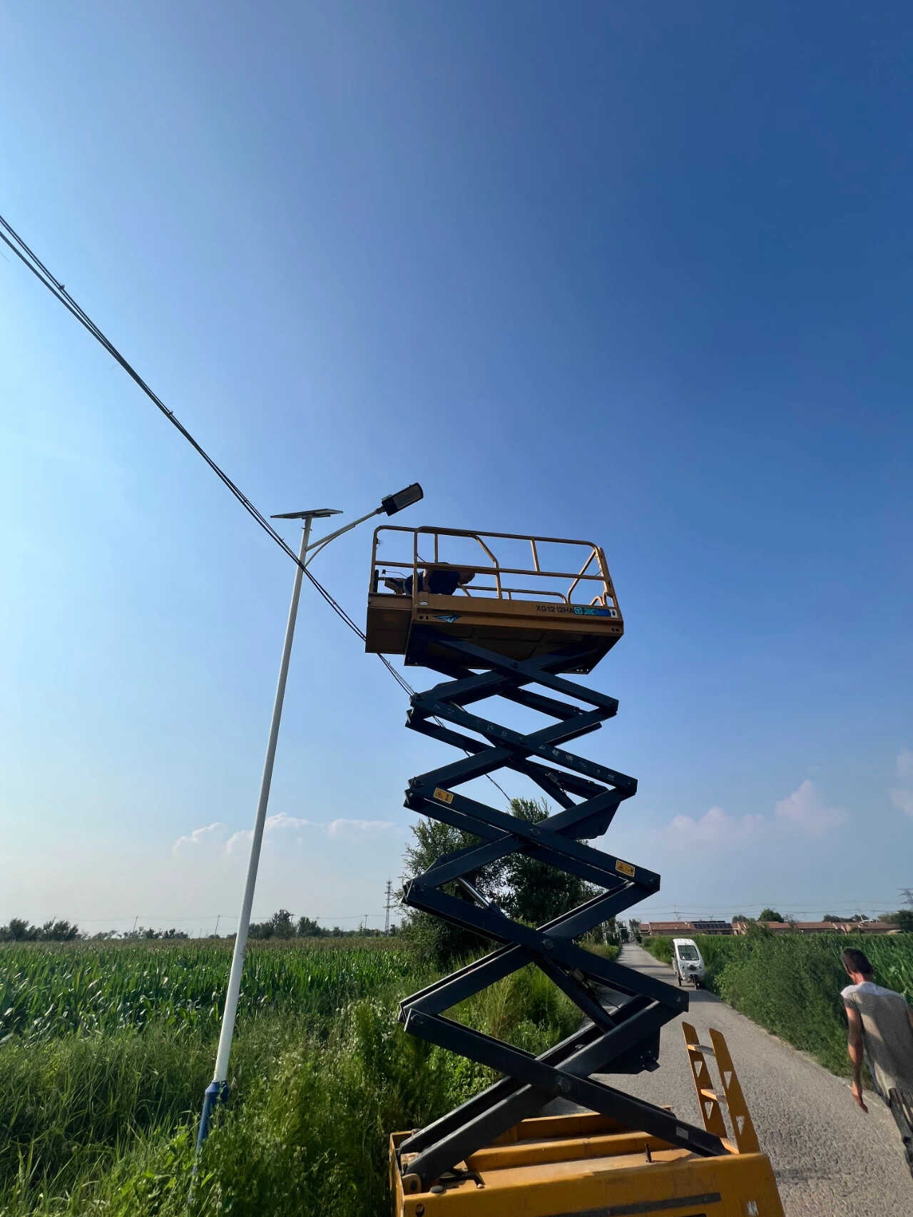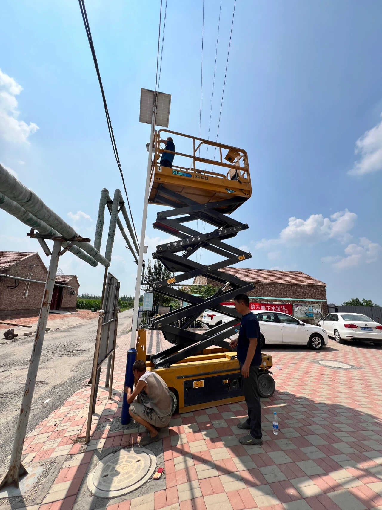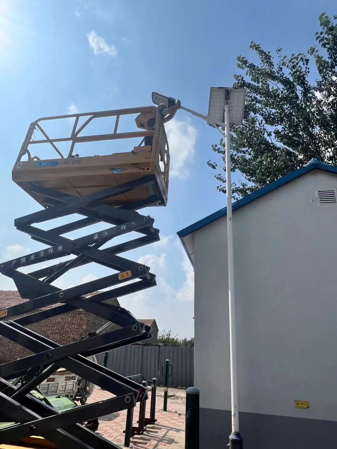 因李靖庄村村内路灯使用年限较长,多盏路灯蓄电池无法蓄电,不能正常照明,严重影响村民出行,尤其村内老年人较多,夜间出行存在较大安全隐患。针对这一情况,李靖庄村“两委”认真进行实地调研、制定解决方案、迅速组织人员对村内11盏路灯灯头进行统一更换,安装1000瓦节能LED灯头和太阳能电池板。
