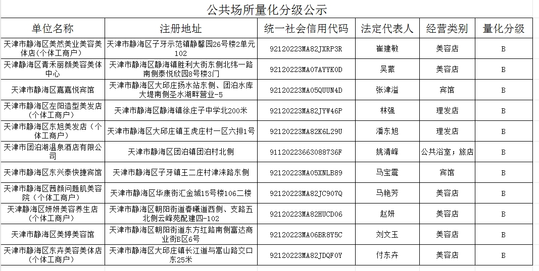 公共场所量化分级公示2025.5.30