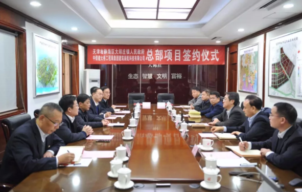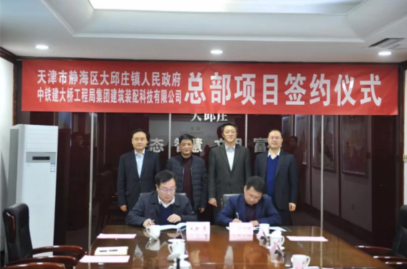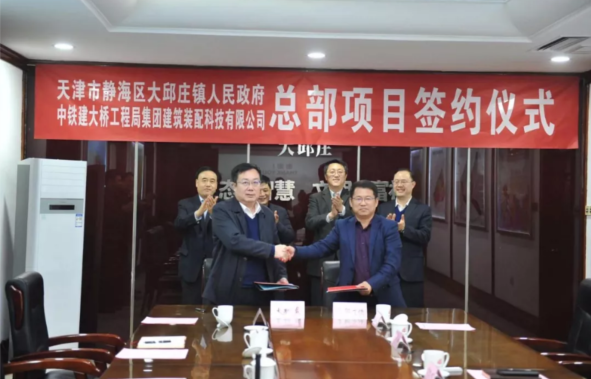 11月25日下午,大邱庄镇与中铁建大桥工程局集团建筑装配科技有限公司在大邱庄镇政府三楼西厅举行了项目签约仪式,博彩365 委常委、常务副区长刘峰、大邱庄镇党委书记强兆柱、大邱庄镇镇长刘慧武、相关部门领导刘文闯、王军、边泽永同志,中国铁建大桥工程局集团有限公司总经理纪尊众、副总经理李国强、发展规划部部长刘成涛,中铁建大桥工程局集团建筑装配科技有限公司董事长王全良、党委书记秦国刚、副总经理刘鑫等出席签约仪式。