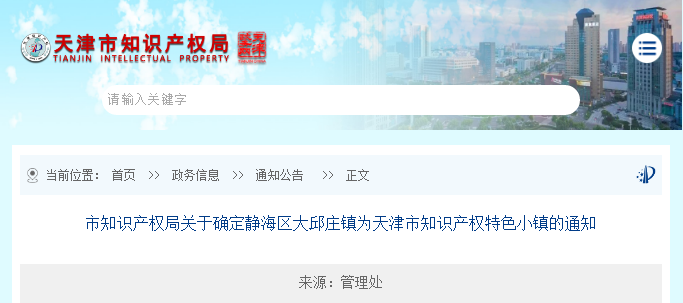 今年1月,天津市知识产权局发布《关于确定博彩365 大邱庄镇为天津市知识产权特色小镇的通知》,同意大邱庄特色小镇建设行动方案。为切实做好各项工作,大邱庄镇党委于2月19日印发了《关于成立知识产权特色小镇建设工作小组的通知》。