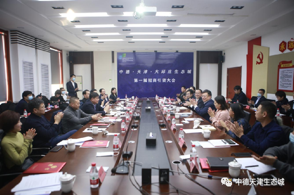 2022年1月6日,中德生态城管理局联合区合作交流办公室、大邱庄商会共同举办“中德生态城第一届招商大会”,邀请区内外重点企业和招商服务机构实地考察中德生态城营商环境和产业载体,聘请了中德生态城第一批招商大使,共商合作、共谋发展。